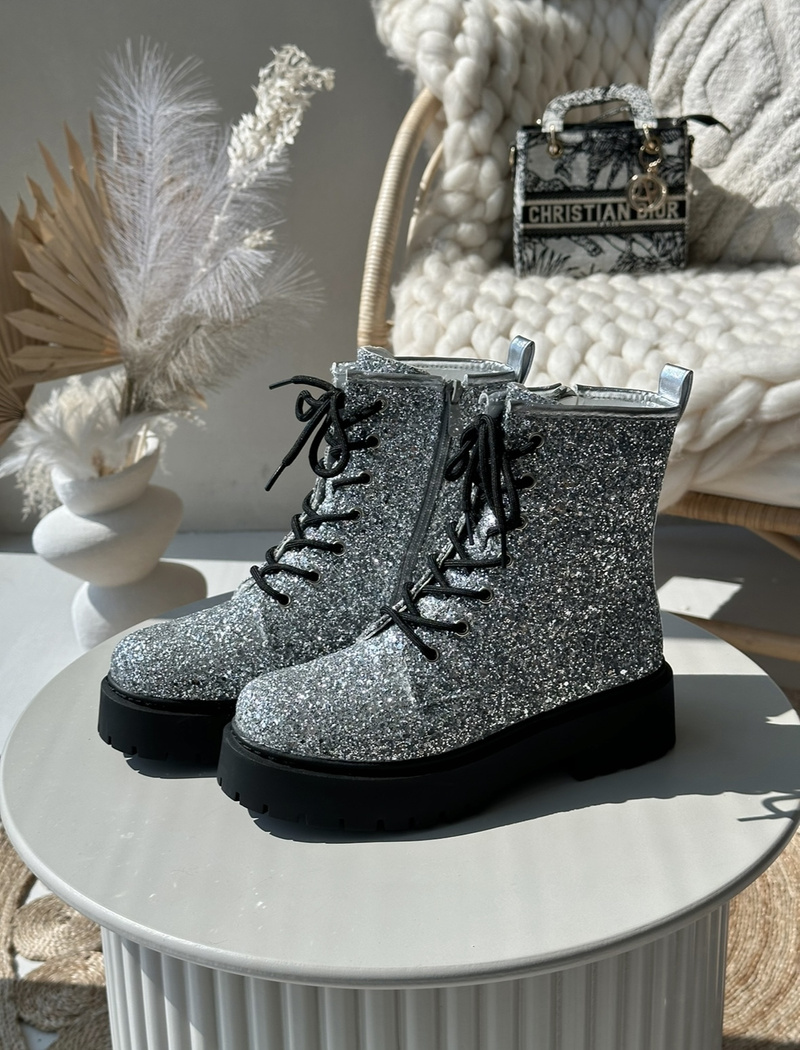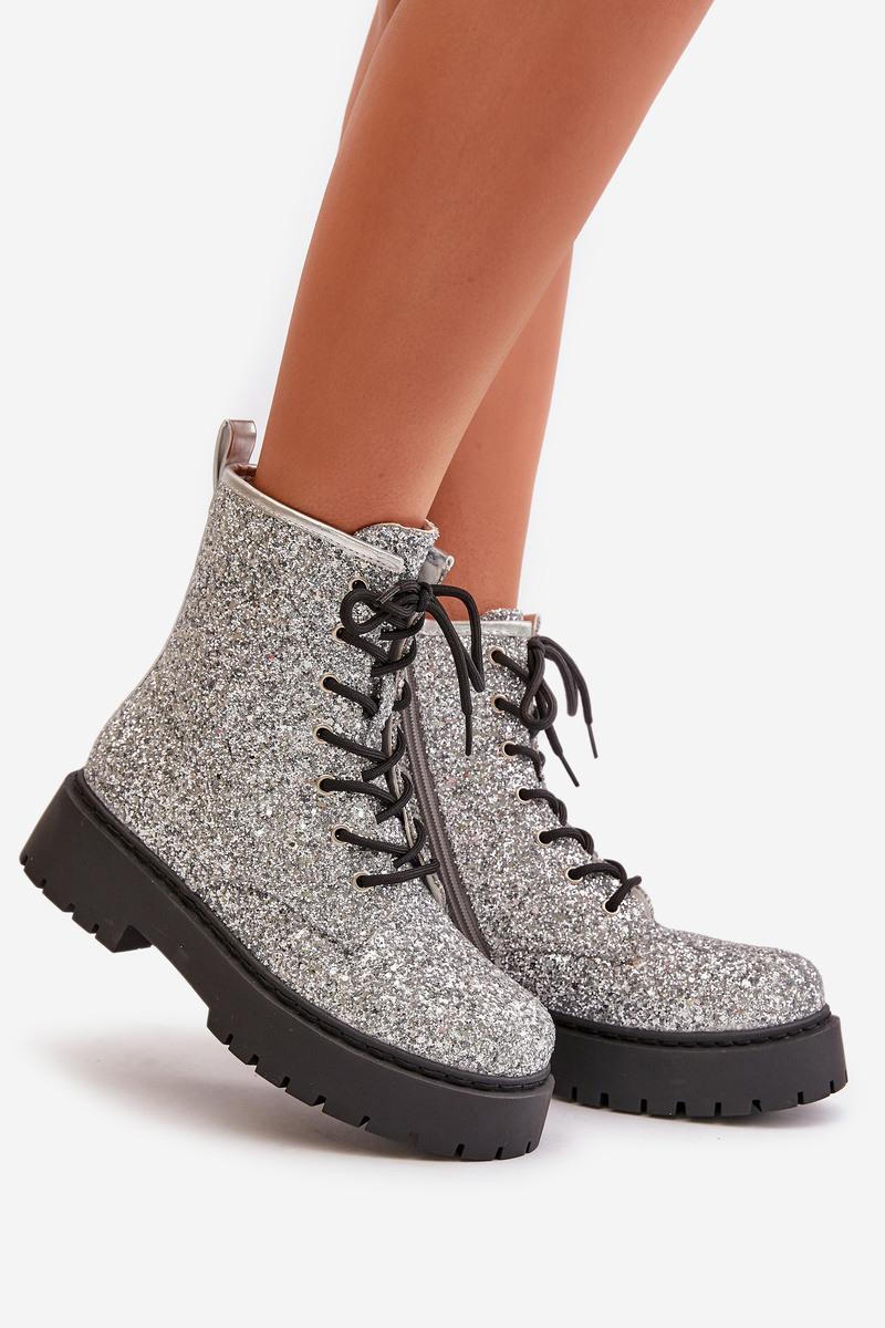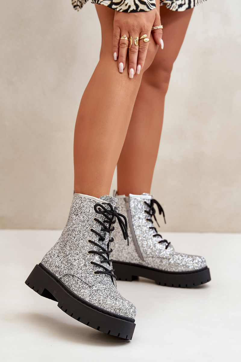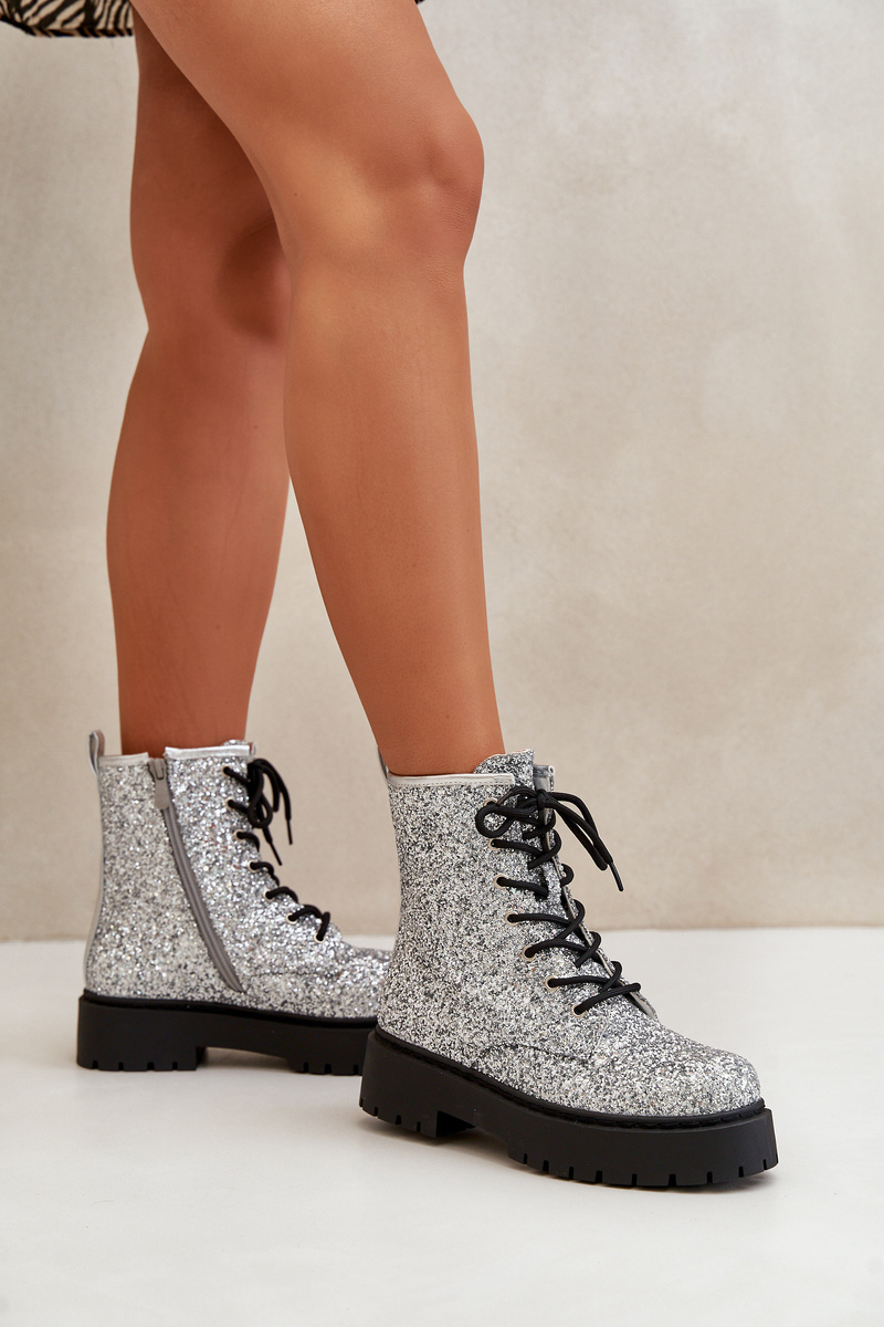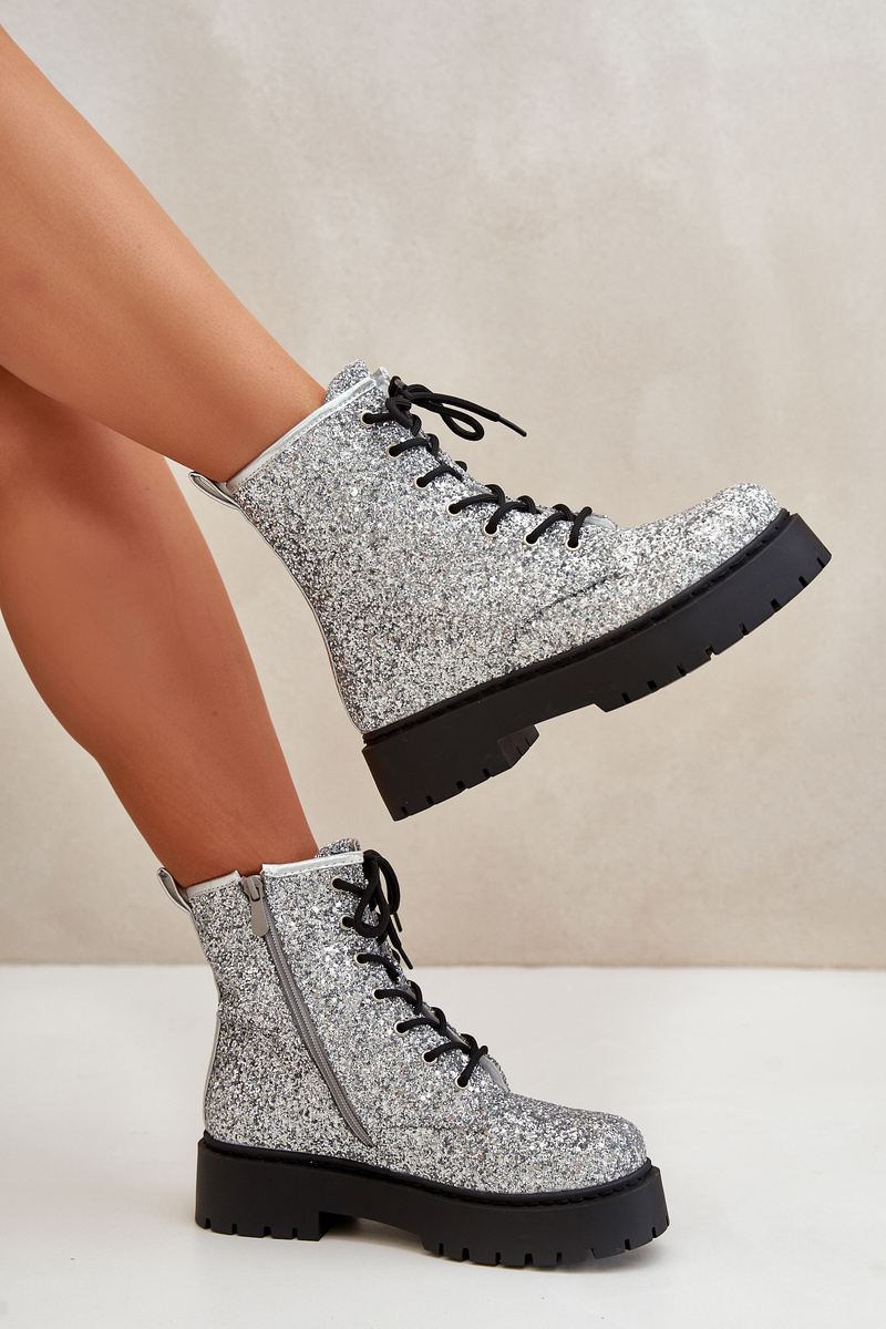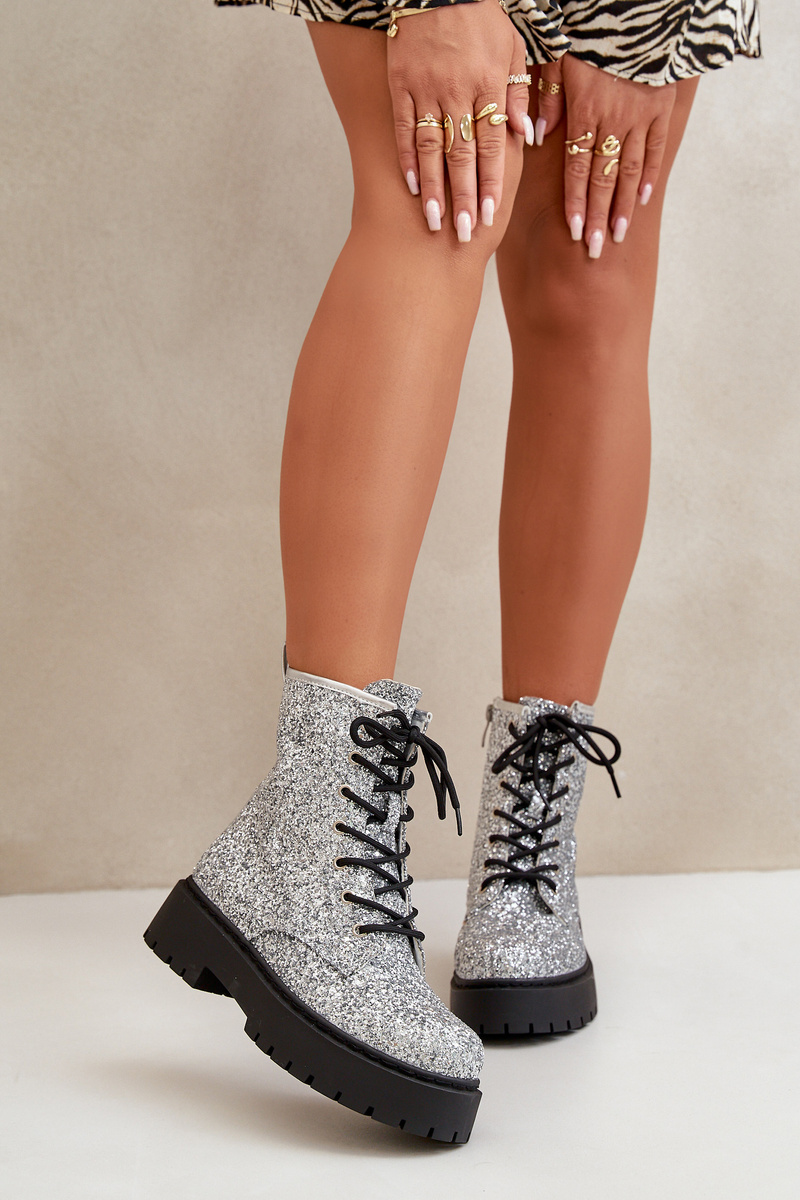 Ботильйони утеплені робочі жіночі прикрашені блискітками сріблястого ліатеїну