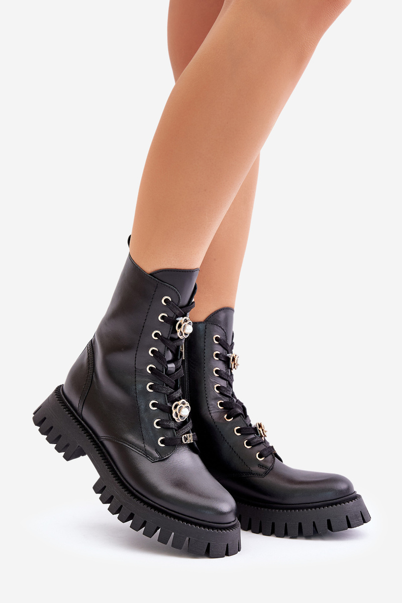 Красиві ботильйони з натуральної шкіри - це стильний вибір для будь-якого випадку. На плоскій каблуці вони забезпечують комфорт протягом усього дня. Модель оснащена шнурівкою і блискавкою, завдяки чому її легко регулювати і швидко надягати. Додатковим декором є милі шарми на шнурівці. Ідеальний варіант для тих, хто цінує комфорт і оригінальний стиль в одному. Обираючи розмір, орієнтуйтеся на таблицю розмірів.