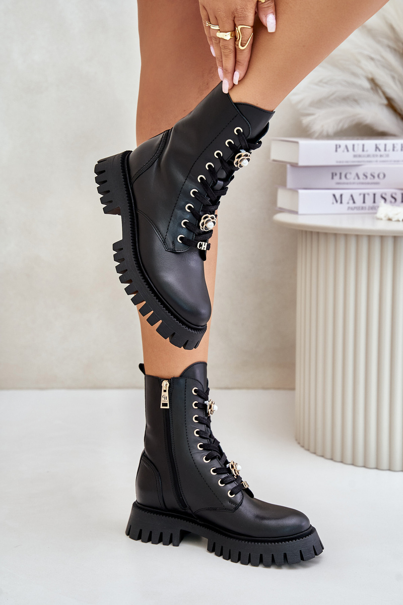 Ботильйони шкіряні робочі зі шпильками на блискавці CheBello 4553 Чорні