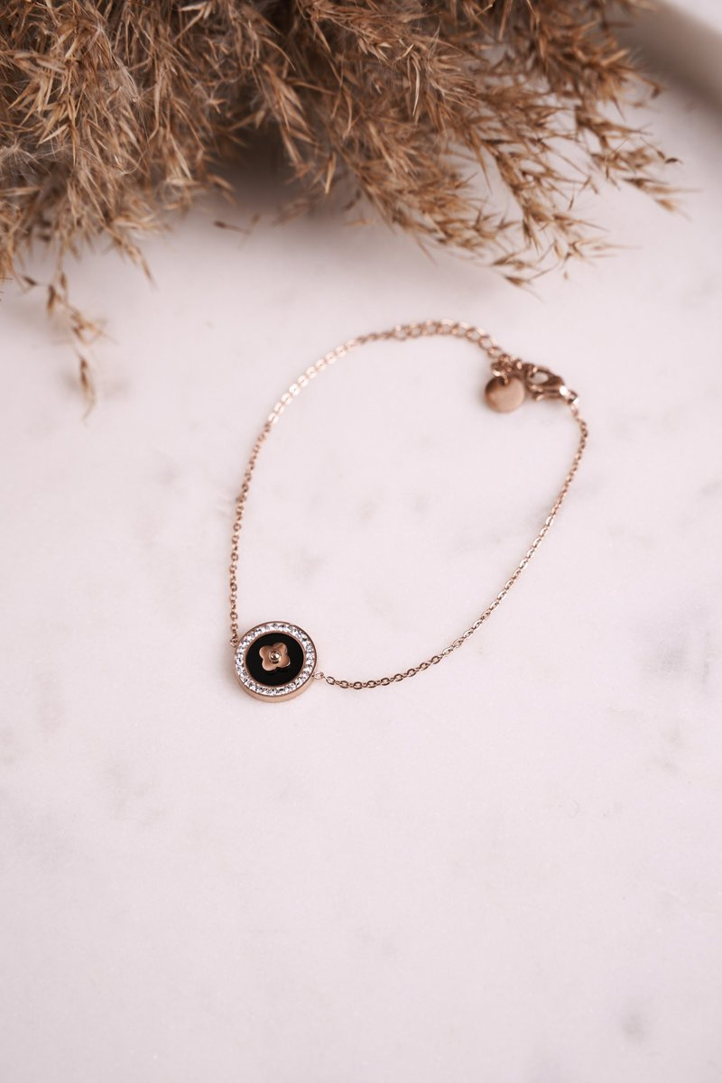 Браслет із конюшиною та кубічним цирконієм удачі з рожевого золота