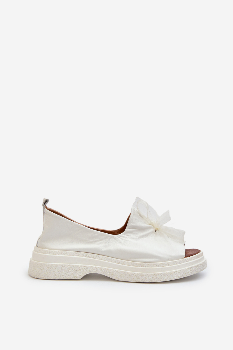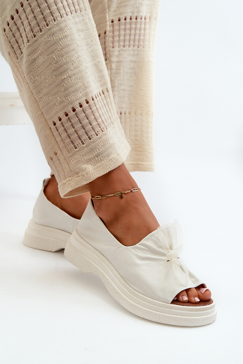 Білі жіночі шкіряні босоніжки з бантом Zazoo 2939
