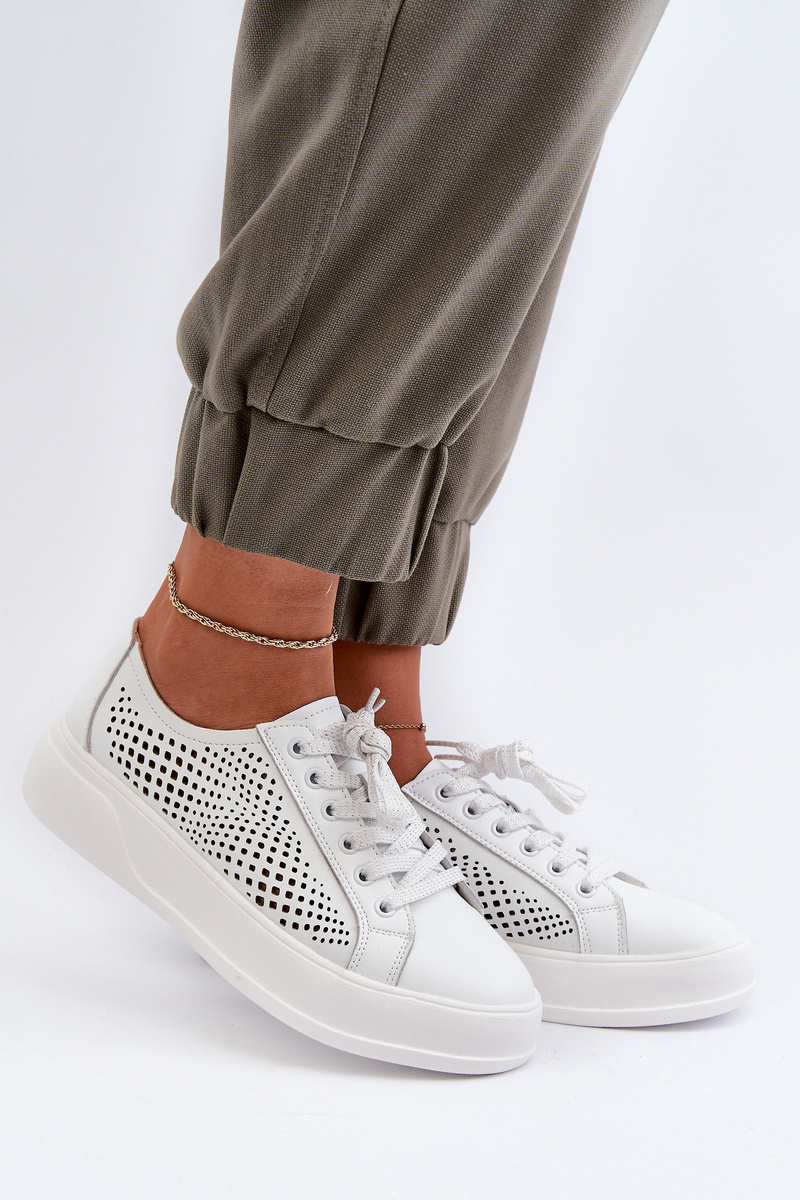 Білі жіночі шкіряні кросівки на платформі S.Barski LR505