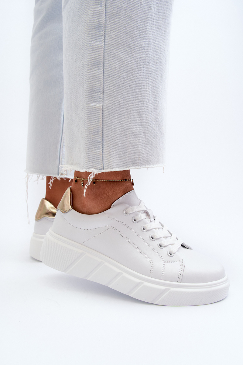 Класичні кросівки з високоякісної натуральної шкіри. Платформа додає модний акцент, гарантуючи стабільність і комфорт. М'яка устілка робить їх комфортним навіть протягом дня. Відмінний вибір для жінок, які цінують комфорт у повсякденному стилі! Обираючи розмір, орієнтуйтеся на таблицю розмірів.
