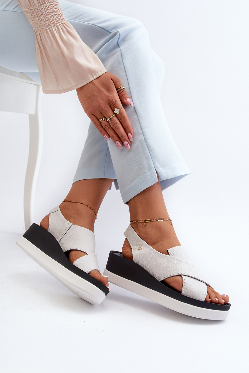 Білі шкіряні босоніжки на танкетці Zazoo 40256