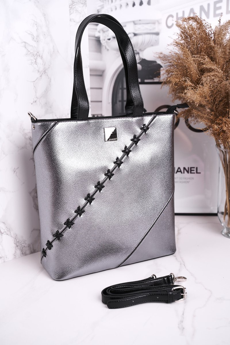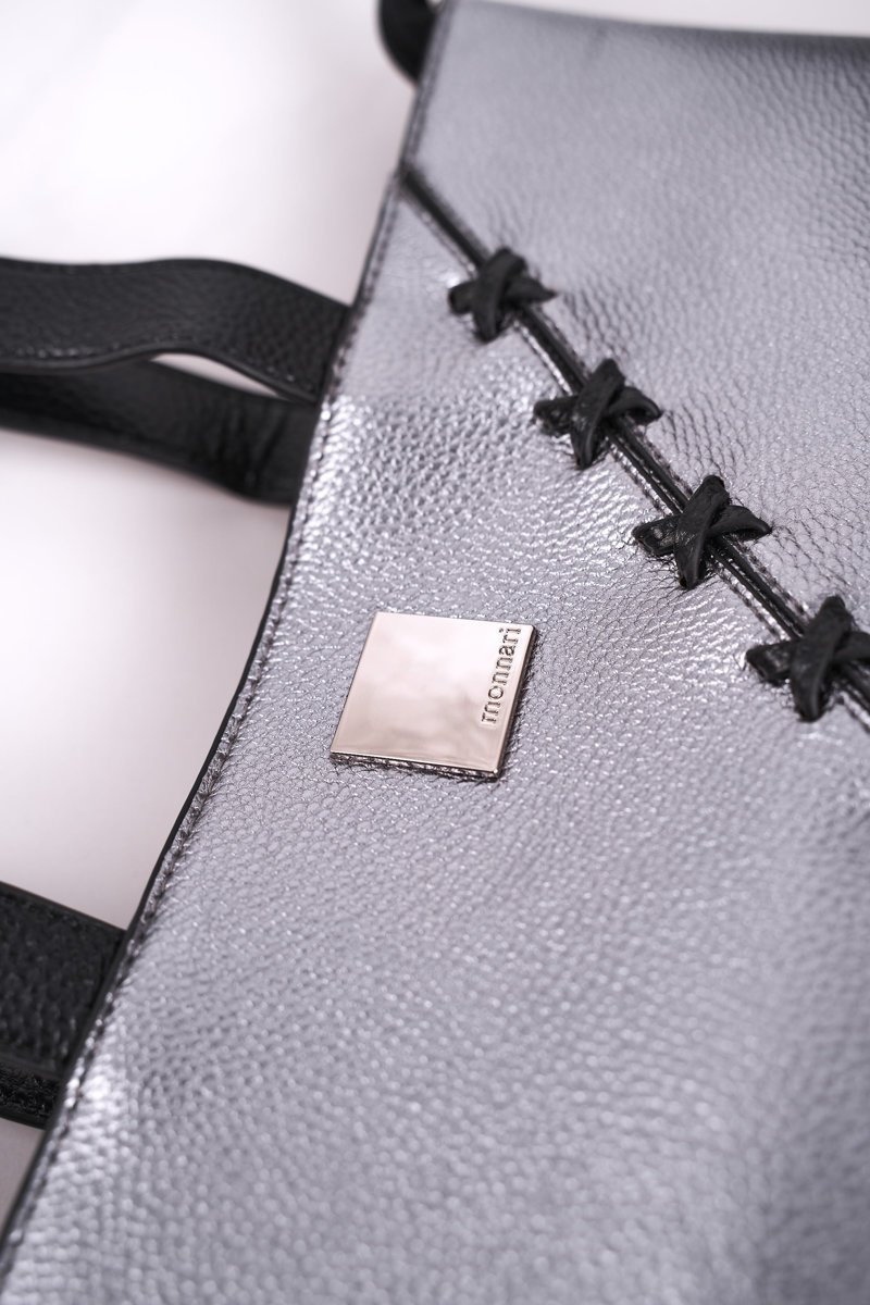 Зручна сумка-шоппер з декоративною шнурівкою. Сумка має зручні ручки. Спереду є ювелірна пластина з логотипом Monnari. Ця сумка для покупок має знімний регульований ремінь. Однокамерний салон з трьома кишенями для телефону та документів. Сумка формату А4, ідеальна для щоденного використання.