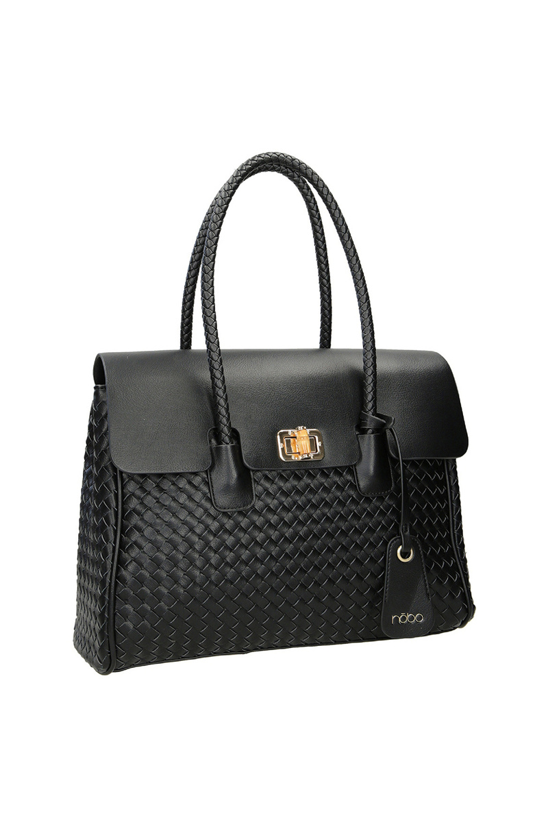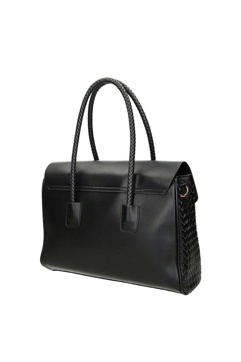 Велика сумка через плече зі стильною тасьмою спереду та на ручках. Виготовлена з еко шкіри. Закривається клапаном з елегантною бамбуковою вставкою. Сумка має довгі ручки. Крім того, сумка оснащена регульованим знімним ремінцем. Внутрішня частина сумки розділена на дві відкриті камери з додатковими кишенями та одну закриту на блискавку. Сумка дуже містка, поміщається формат А4. Модель стильна і практична водночас. Підходить для багатьох стилів.