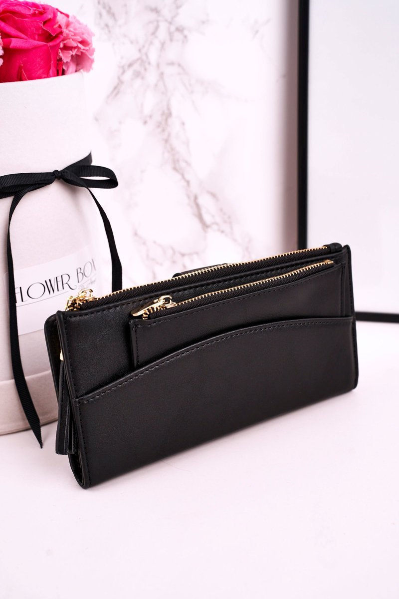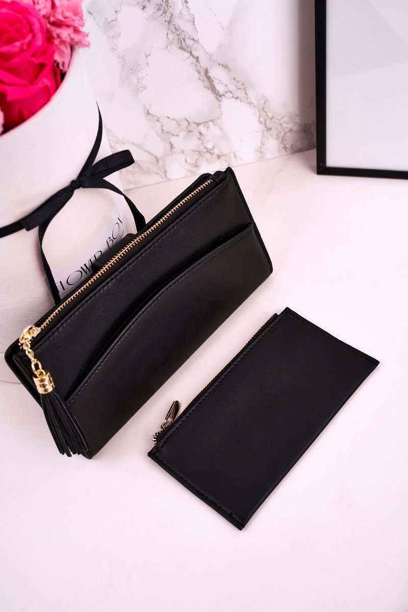 Великий жіночий гаманець з додатковим гаманцем і бахромою чорного кольору