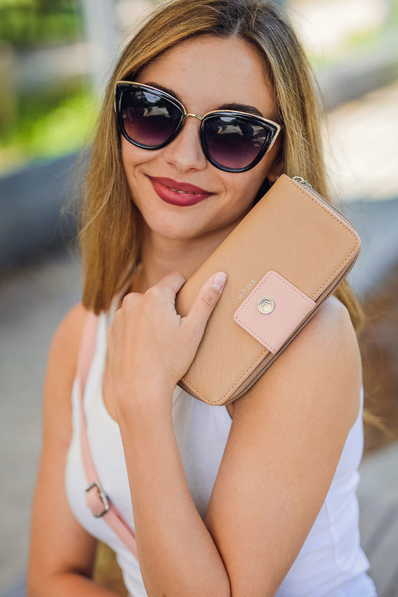 Великий жіночий гаманець на блискавці Коричнево-рожевий Huntress