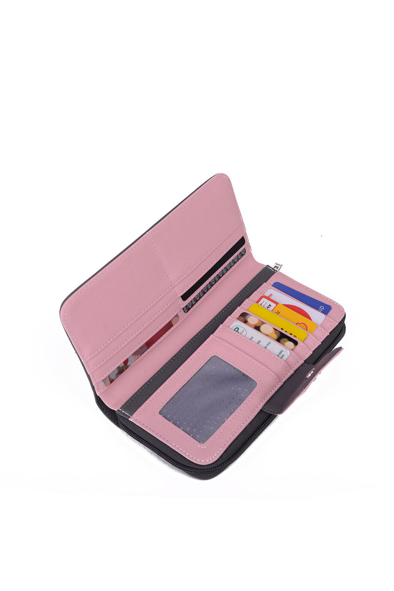 Великий жіночий гаманець на блискавці сіро-рожевий Huntress