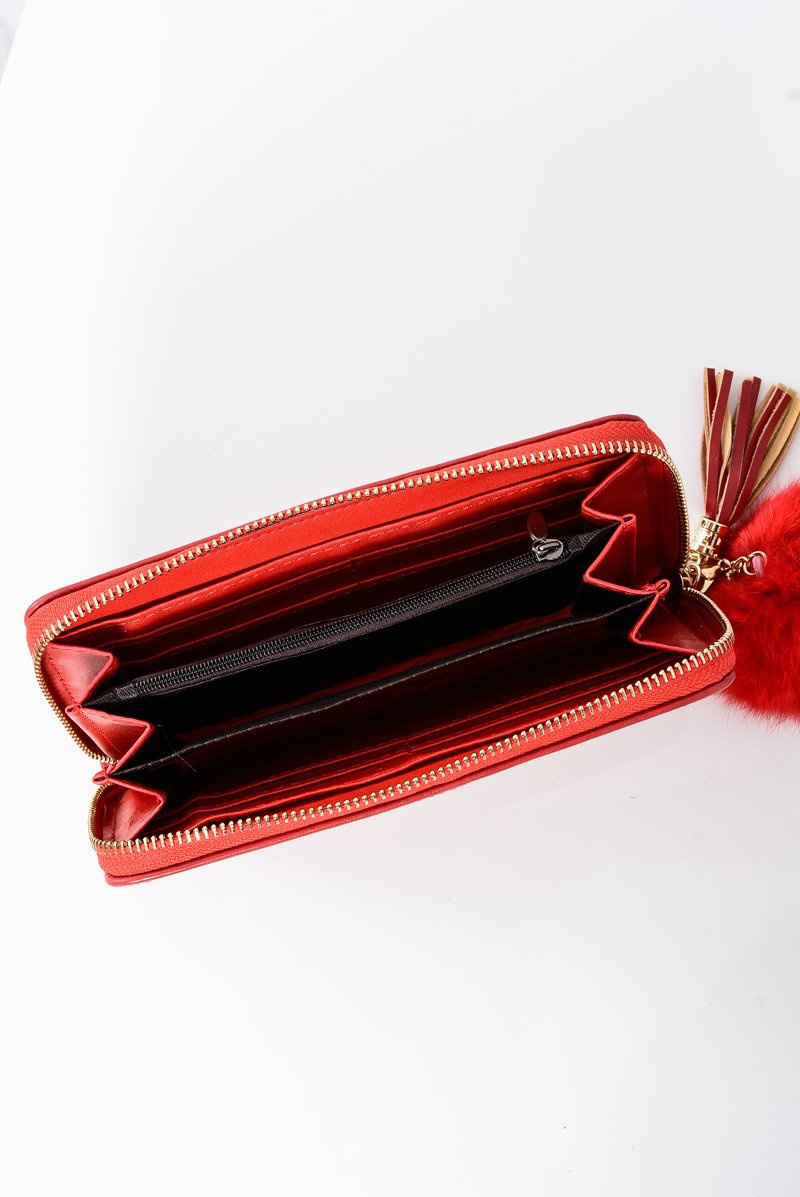 Великий жіночий червоний гаманець із золотим замком. Хутряна підвіска