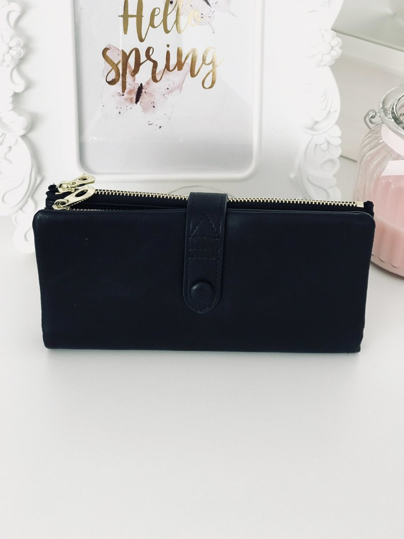 Великий жіночий чорний гаманець із золотою фурнітурою