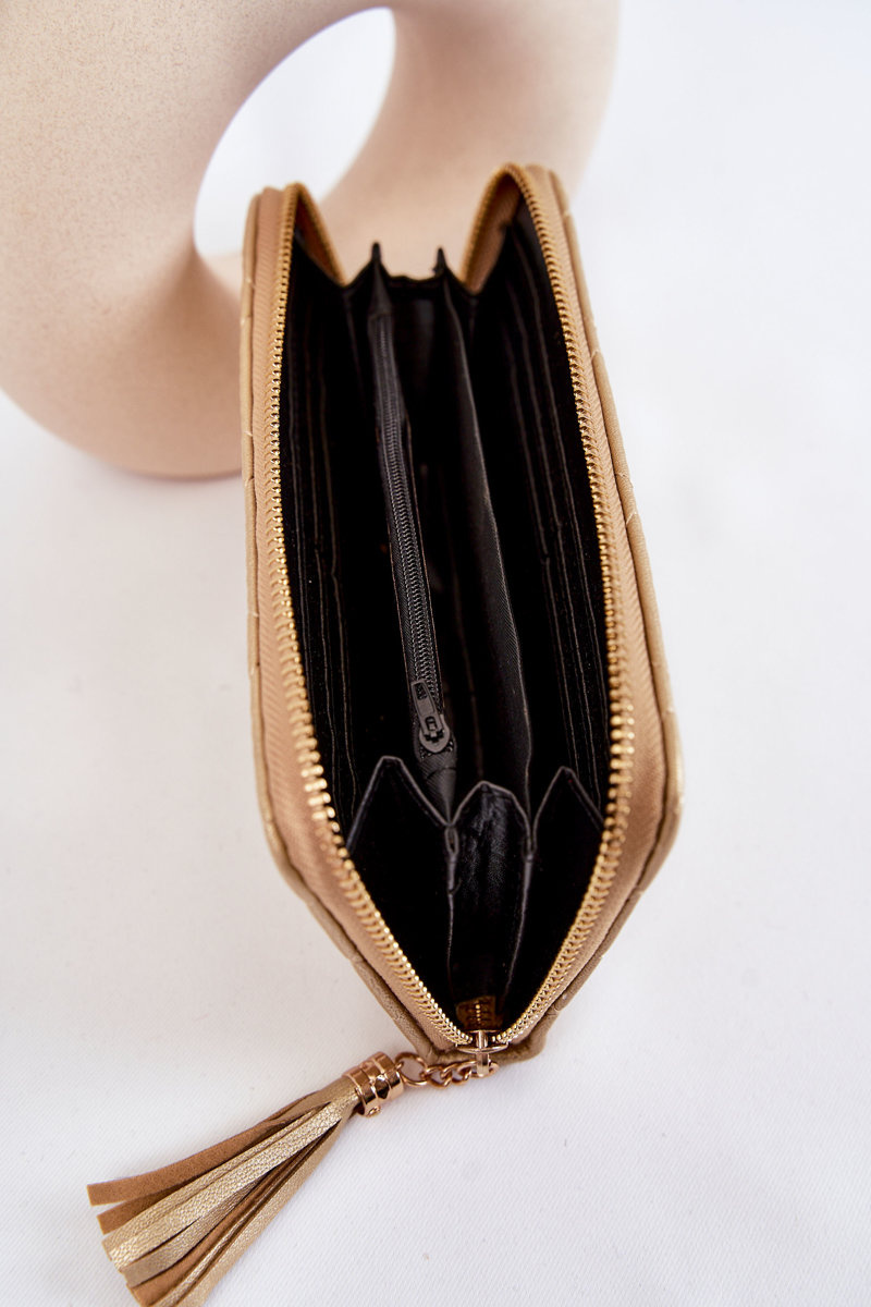 Великий практичний гаманець застібається на блискавку з бахромою. Гаманець вміщує монети, банкноти і відкриті кишені для карток і документів. Виконана з екологічної шкіри. Всередині має три відділення з двома відділеннями. Також є кишеня на блискавці. Зробіть подарунок собі чи близьким!