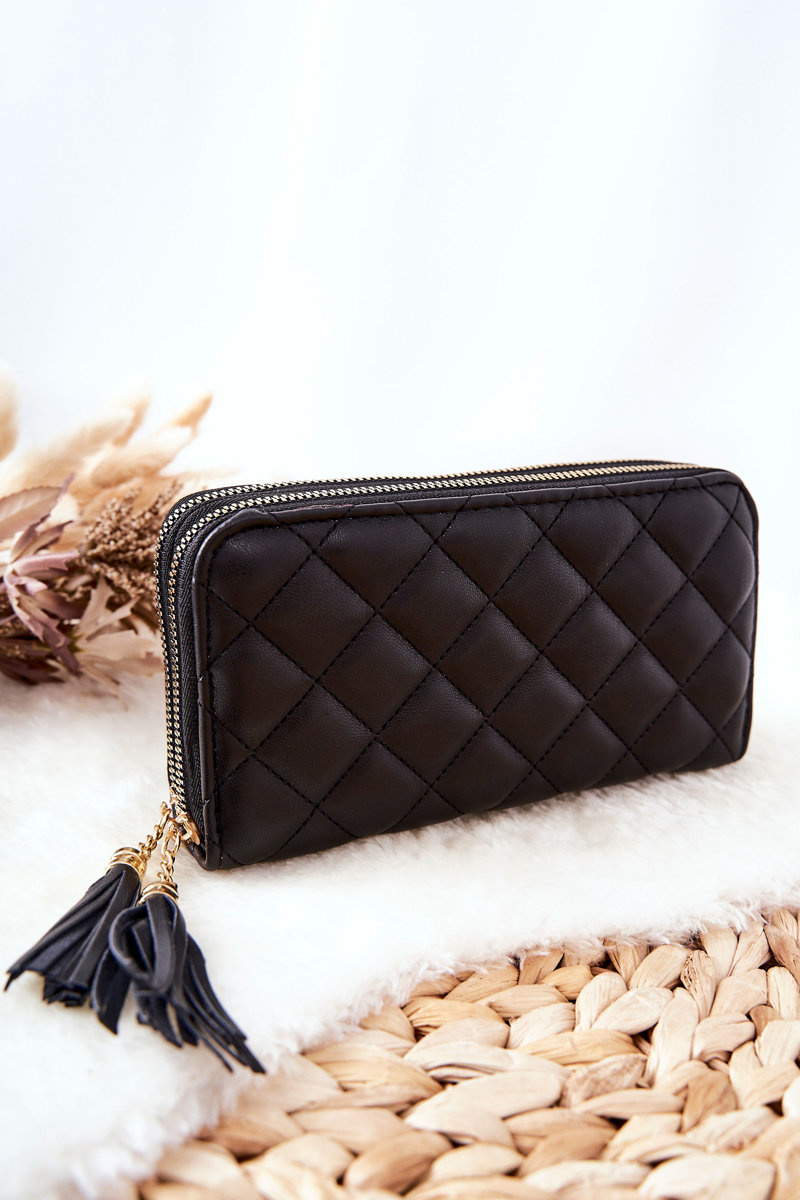 Великий і практичний гаманець застібається ззовні на дві блискавки. В одному з відділень можна знайти монети, купюри та візитні картки, а в іншому — невеликий смартфон, купюри чи документи. Зовні гаманець виконаний зі стьобаної екошкіри, на блискавках є китиці. Крім того, в комплекті є пояс.