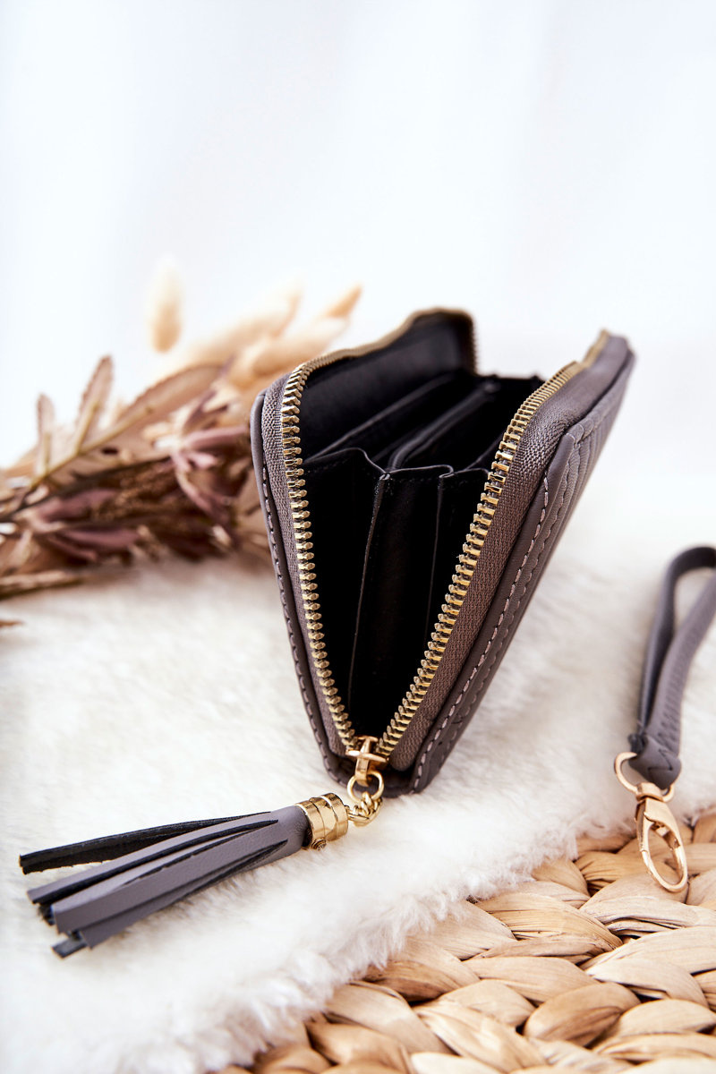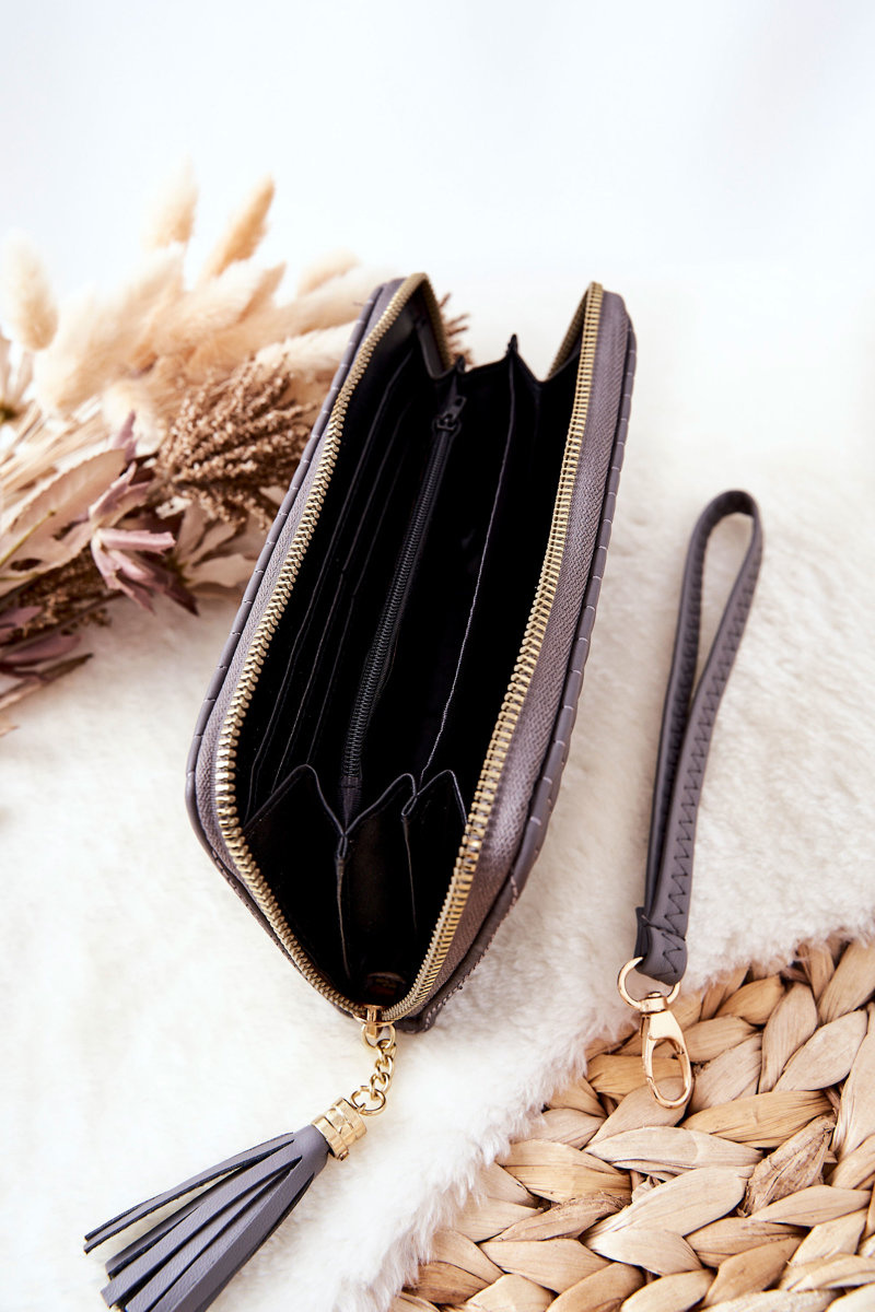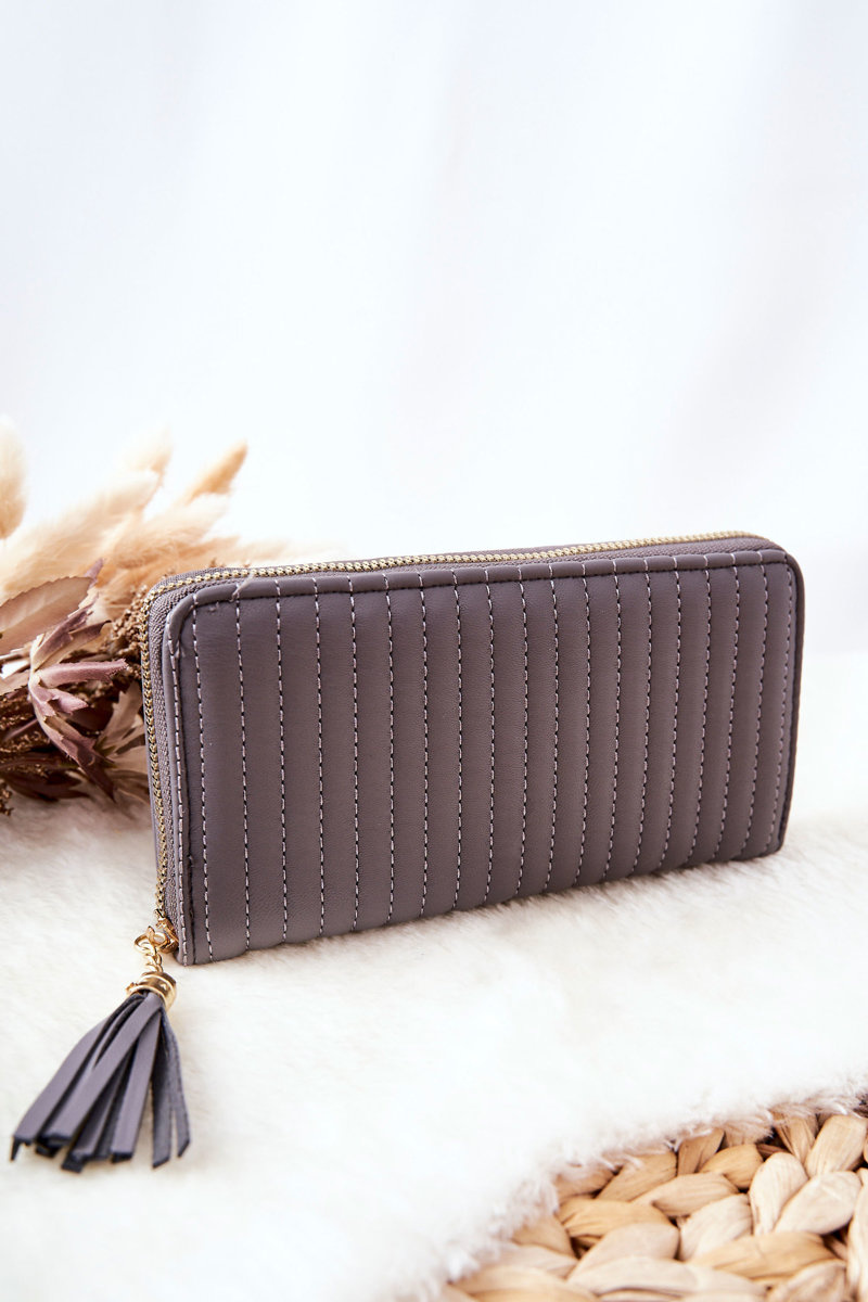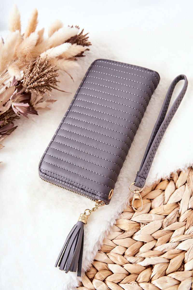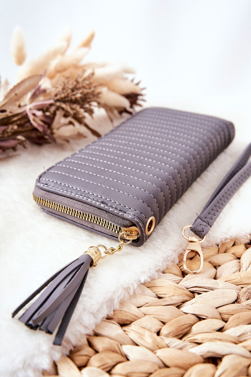 Великий стьобаний гаманець із ремінцем сірого кольору