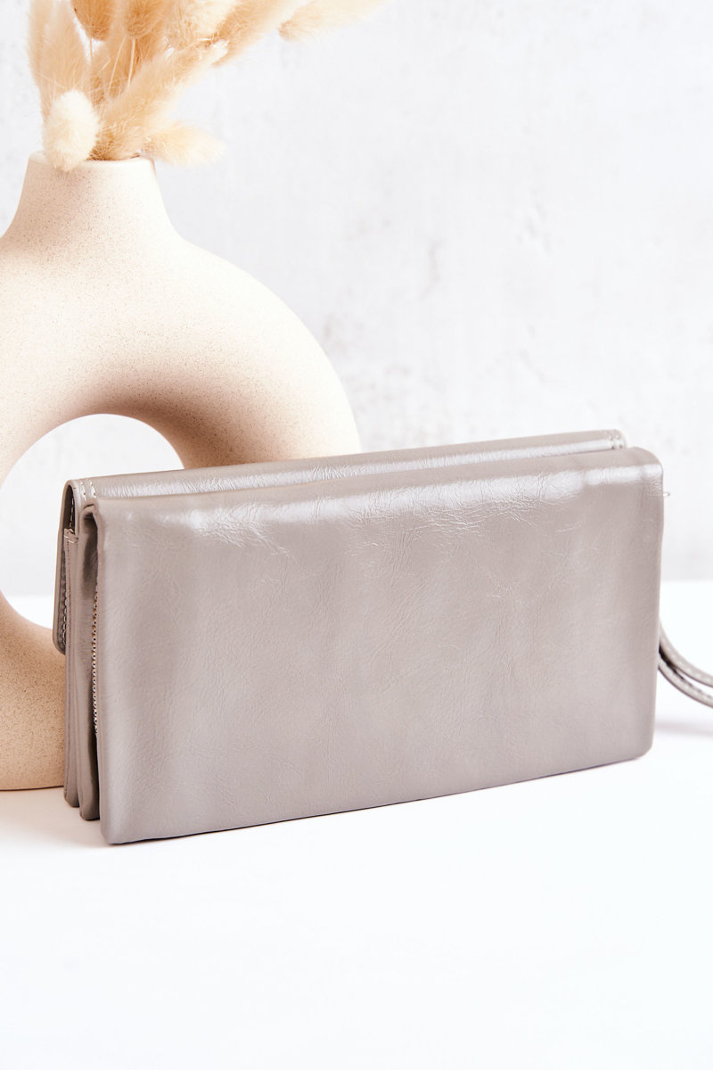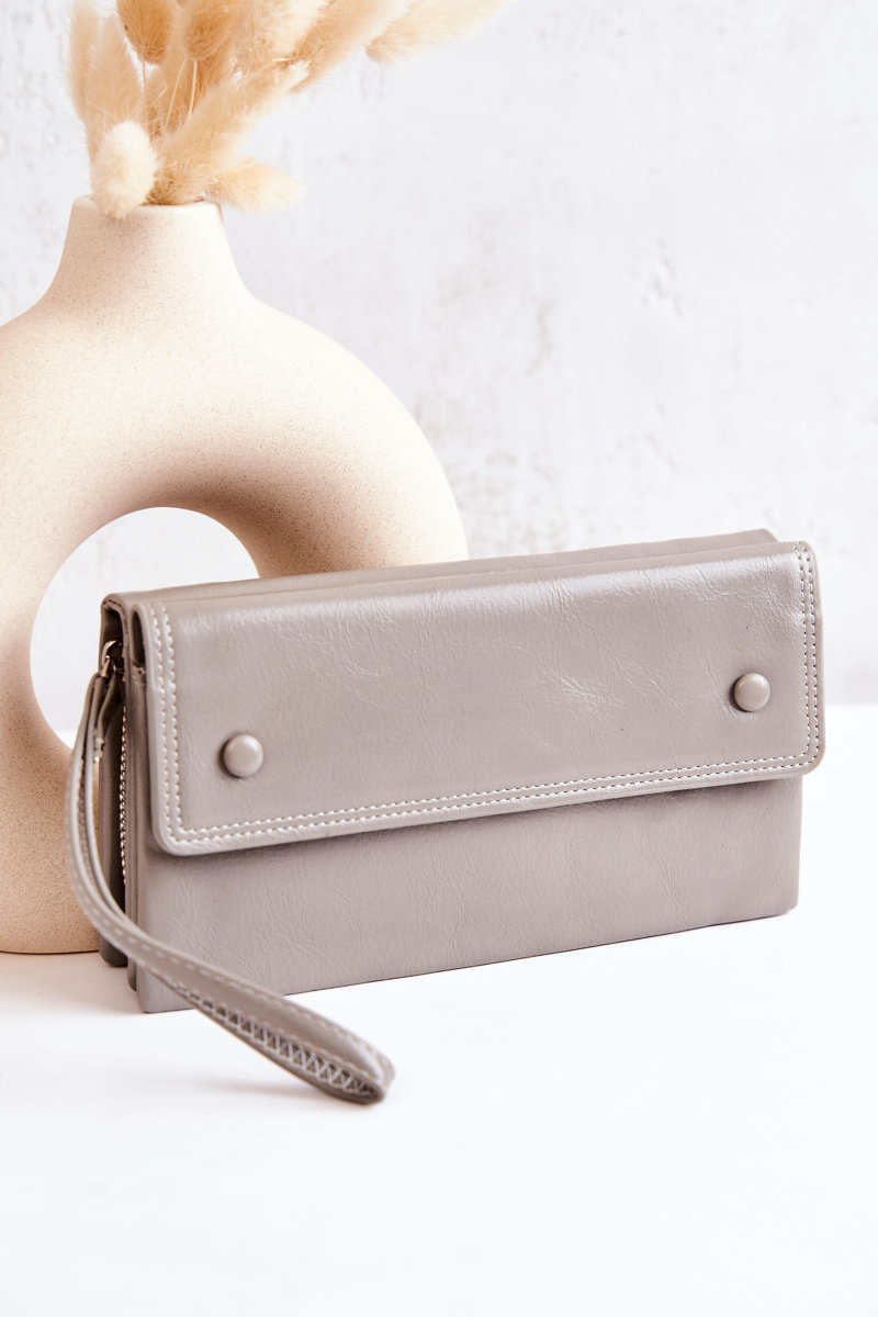 Великий шкіряний гаманець на блискавці сірий Loreaine