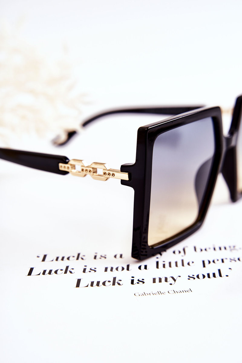 Модні сонцезахисні окуляри підходять у багатьох ситуаціях! Не тільки в літній сезон, але і в зимовий, коли сонячні промені відбиваються від снігу. Квадратна модель з тонкою оправою лінз. Пластмасовий міст. Храм виготовлений із пластику з декоративним золотим елементом. Інформація виробника: окуляри поглинають шкідливі ультрафіолетові промені, 2 категорія.