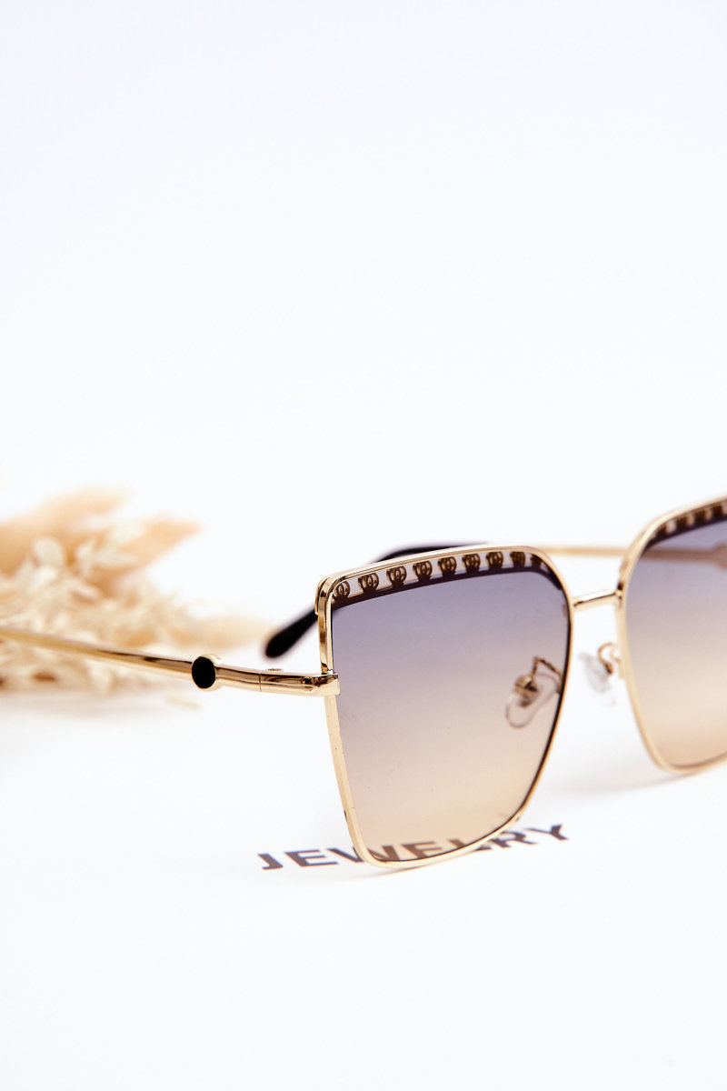 Унікальні сонцезахисні окуляри виготовлені з комбінації пластику та металу. Модель у стилі метелик із гарним декором усередині на верхній частині лінзи. Крім того, окуляри мають тонку оправу і дужки. Силіконові накладки на нос забезпечать правильну посадку окулярів. Інформація від виробника: UV 400, категорія 3.