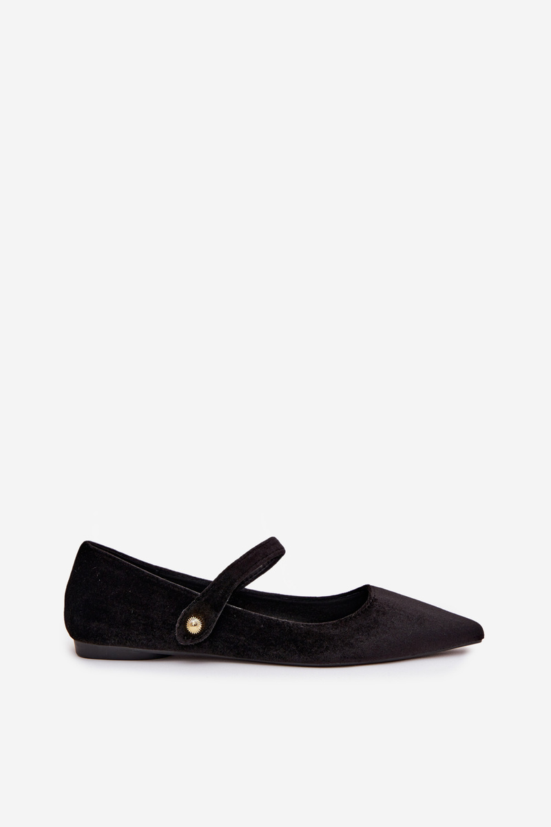 Велюрові балетки з ремінцем і золотим елементом чорні Gisanne