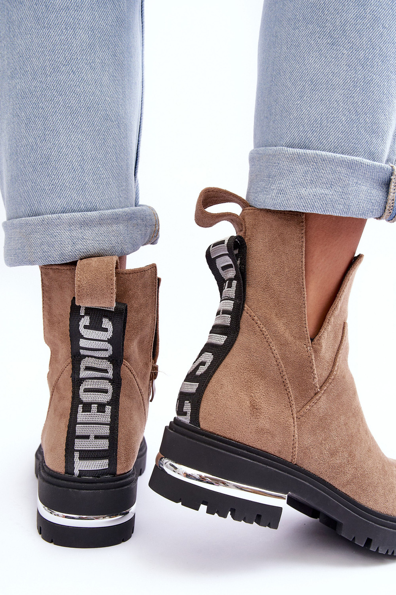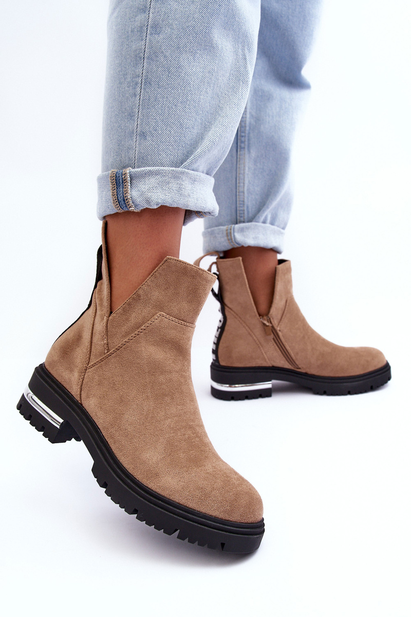 Вирізані туфлі на підошві та замшеві чоботи на низькому каблуці, бежевого кольору Lamedella