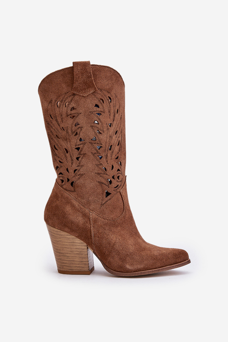 Вирізані чоботи на каблуці замшеві Lewski 3609 Коричневий
