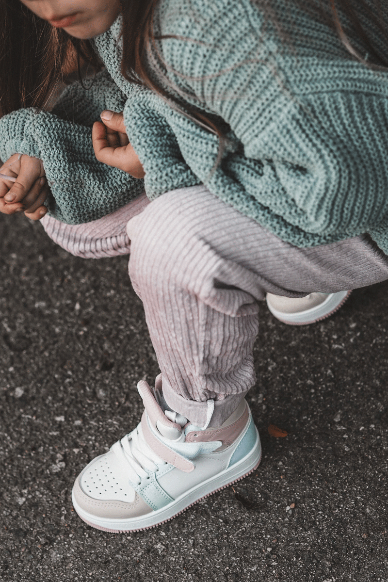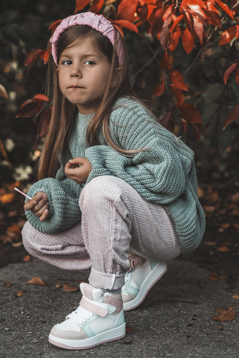 Дитяче спортивне взуття з еко шкіри. Встановити на пластиковій платформі. Застібаються на липучку і додатково мають шнурки, що імітують гуму. Модель з більш високим валом. Ці кросівки точно сподобаються вашій дитині! При виборі розміру орієнтуйтеся на таблицю розмірів.