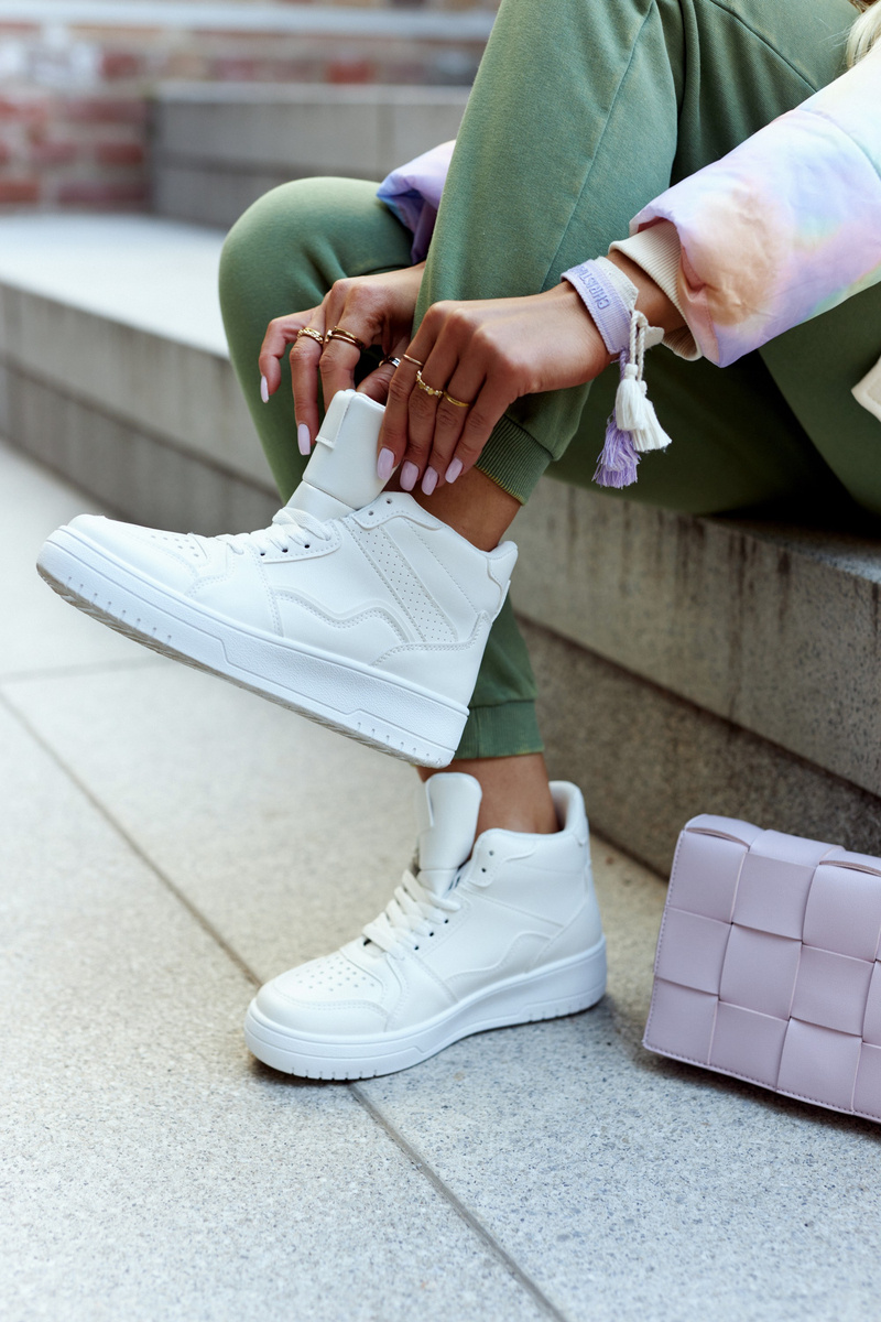 Високе спортивне взуття на ніжній платформі – must have цього сезону! Вони підійдуть до багатьох стилів. Виготовлені з комбінації еко шкіри та еко замші. Високий верх і плоска підошва ідеально стабілізують стопу. Матеріальна вставка знімна. Модель зав'язується на плоскі шнурки. Круглий, більш широкий носок забезпечить комфорт під час використання. Обов'язково перегляньте інші моделі спортивного взуття в нашій пропозиції! При виборі розміру скористайтеся таблицею розмірів.