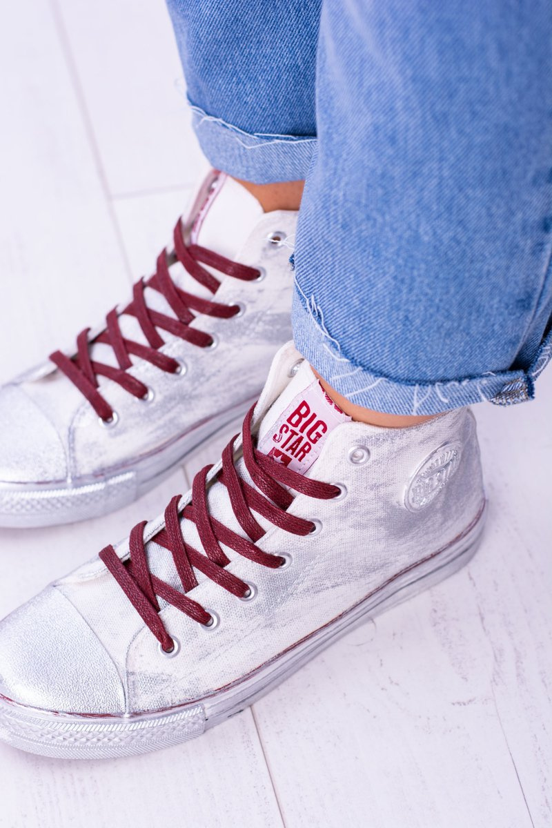 Високі білі посріблені тенісні кросівки Big Star BB274016