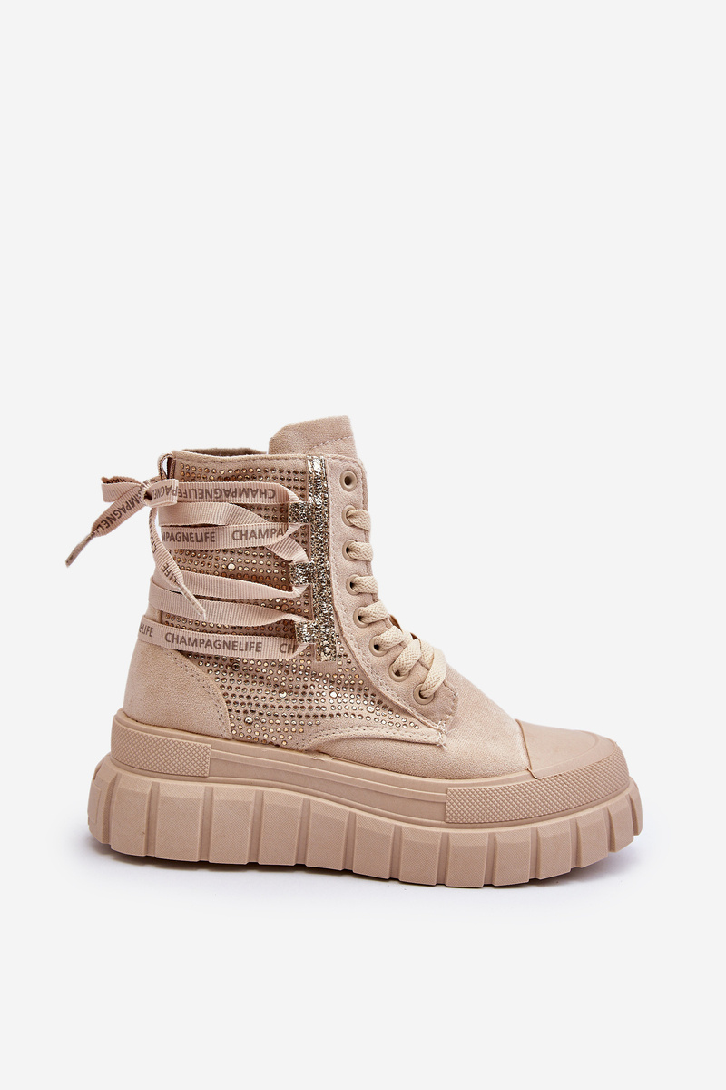 Високі жіночі кросівки на масивній платформі бежеві Wonise