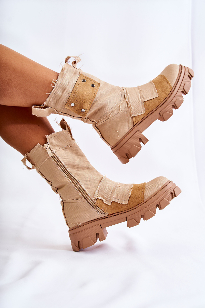Високі робочі ботфорти на блискавці Темно-бежевий Nerisa