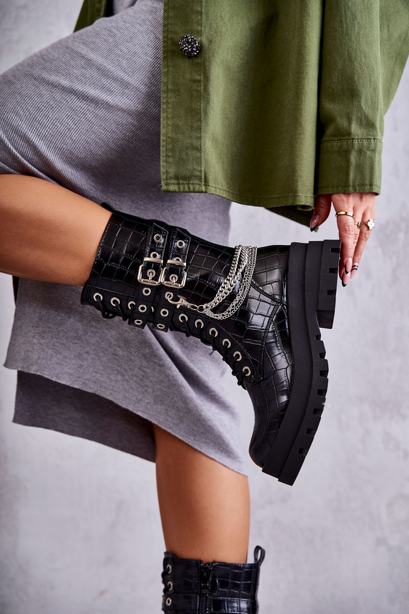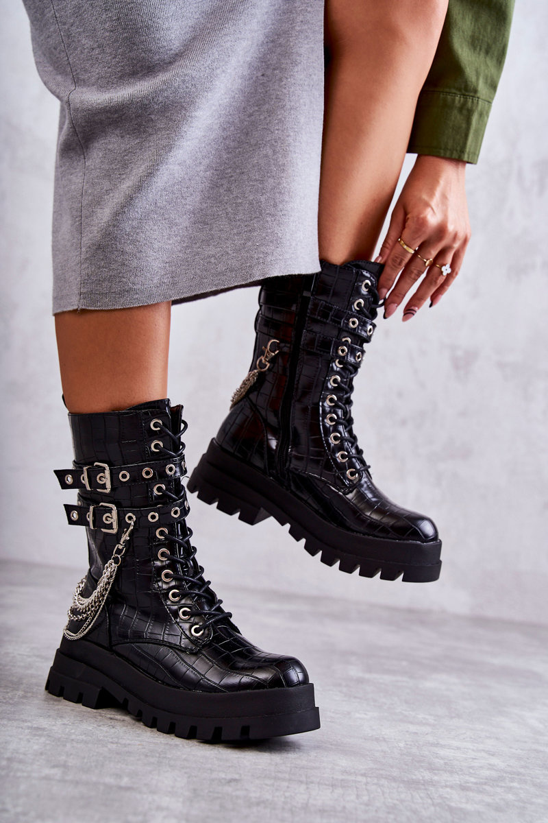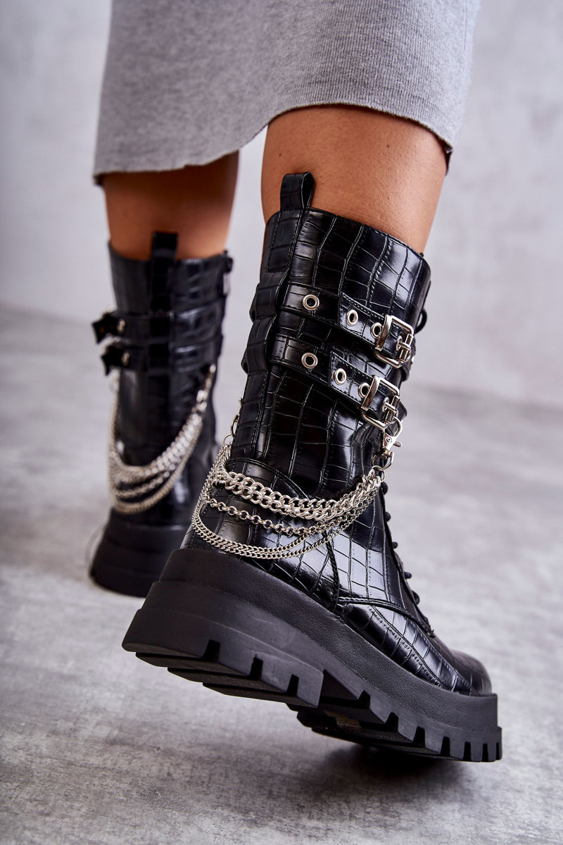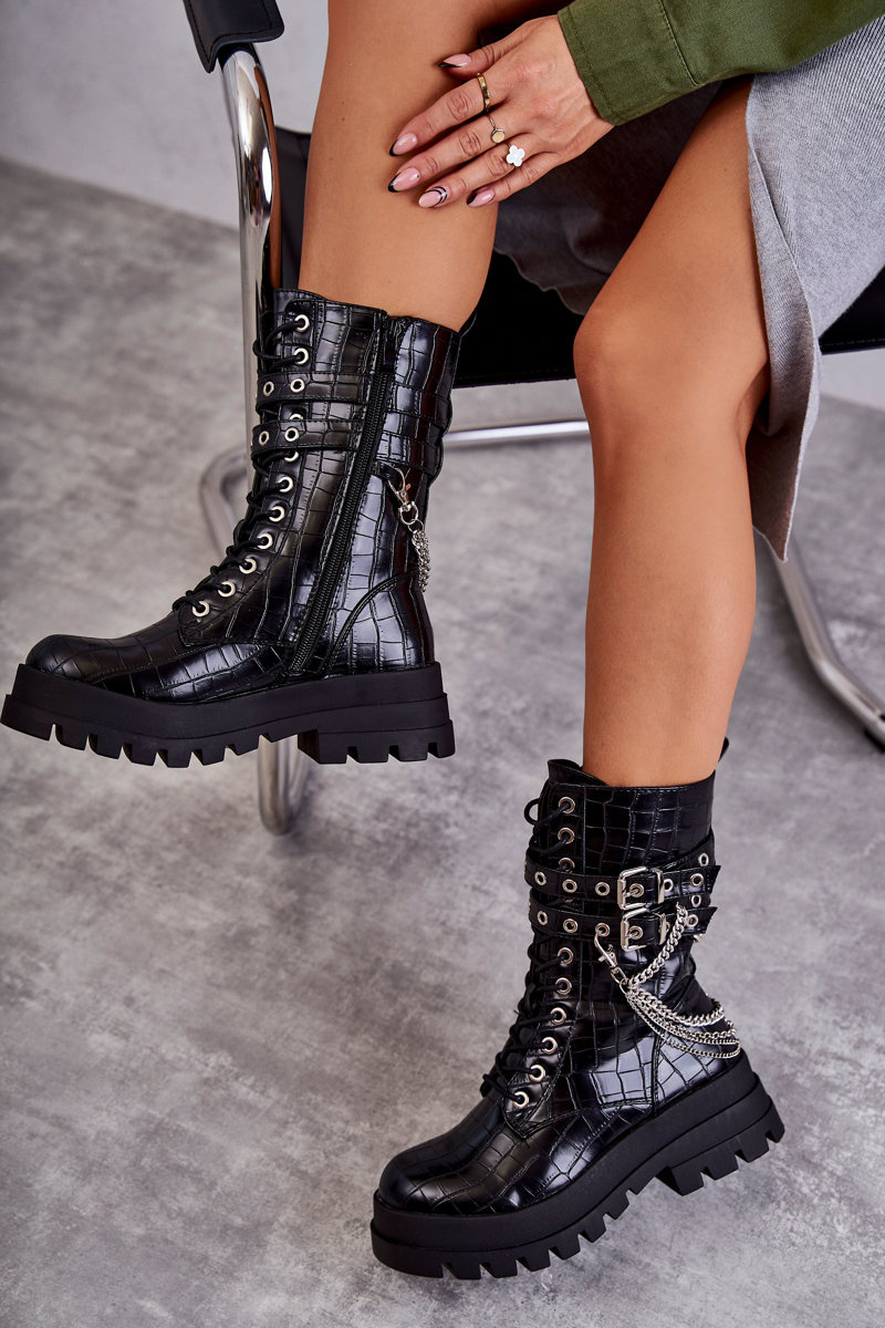 Високі робочі черевики з ланцюгом зі змійкою чорного кольору Montero