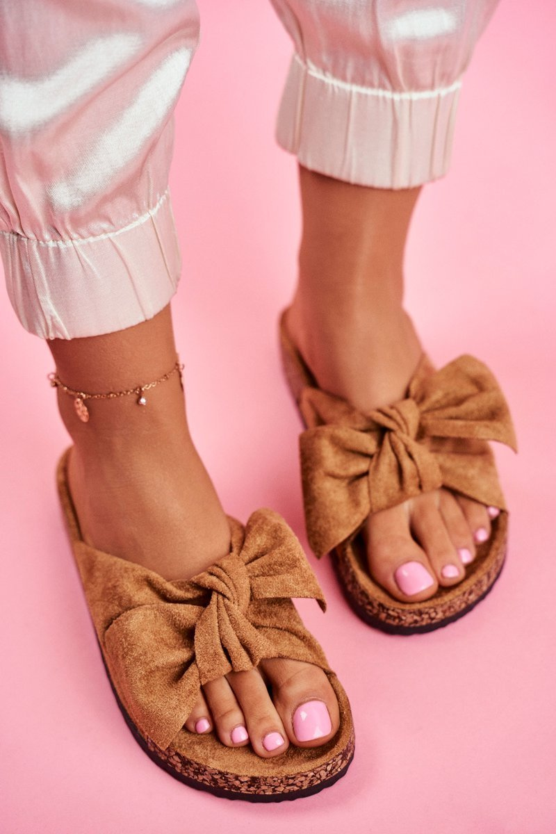 Красиві шльопанці на корковій підошві. Взуття має контурну устілку, яка гарантує максимальний комфорт. Верх виконаний з м'якої приємної на дотик еко-замші. Підошва виготовлена ​​з пластику. Чарівний бантик спереду. Шльопанці підійдуть як для щоденного носіння на роботу або в магазин, так і вдома замість тапочок. Ідеальний варіант для літа! В'єтнамки доступні в багатьох гарних кольорах! Під час вибору розміру зверніться до таблиці розмірів.