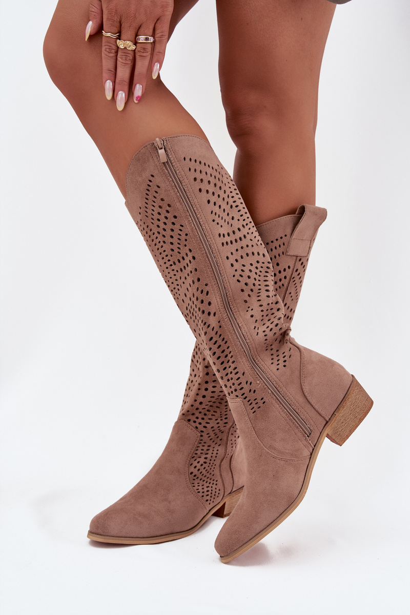 Жіночі чоботи з еко замші — чудовий варіант для холодніших днів. Встановлені на низькому каблуці у формі куба. Вони характеризуються відкритим візерунком, що надає їм легкий, модний вигляд. Міндалеподібний носок. Молнія полегшує одягання і зняття, а утеплення на рівні стопи забезпечує тепло і комфорт навіть у холодні дні. Ідеальні для щоденного стилю, ці чоботи поєднують елегантність із практичністю і є відмінним вибором для осінньо-зимового сезону. Будь ласка, зверніться до розмірної сітки при виборі розміру.