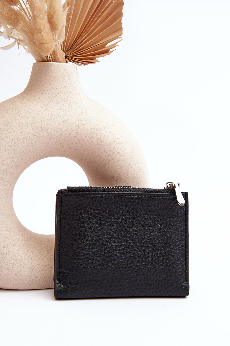Елегантний маленький жіночий гаманець з еко шкіри. Застібається на магнітний затиск. Всередині є місце для банкнот, карток і фотографії. Додаткова кишеня застібається на блискавку. Ця модель невелика, але обов'язково помістить найнеобхідніші речі.