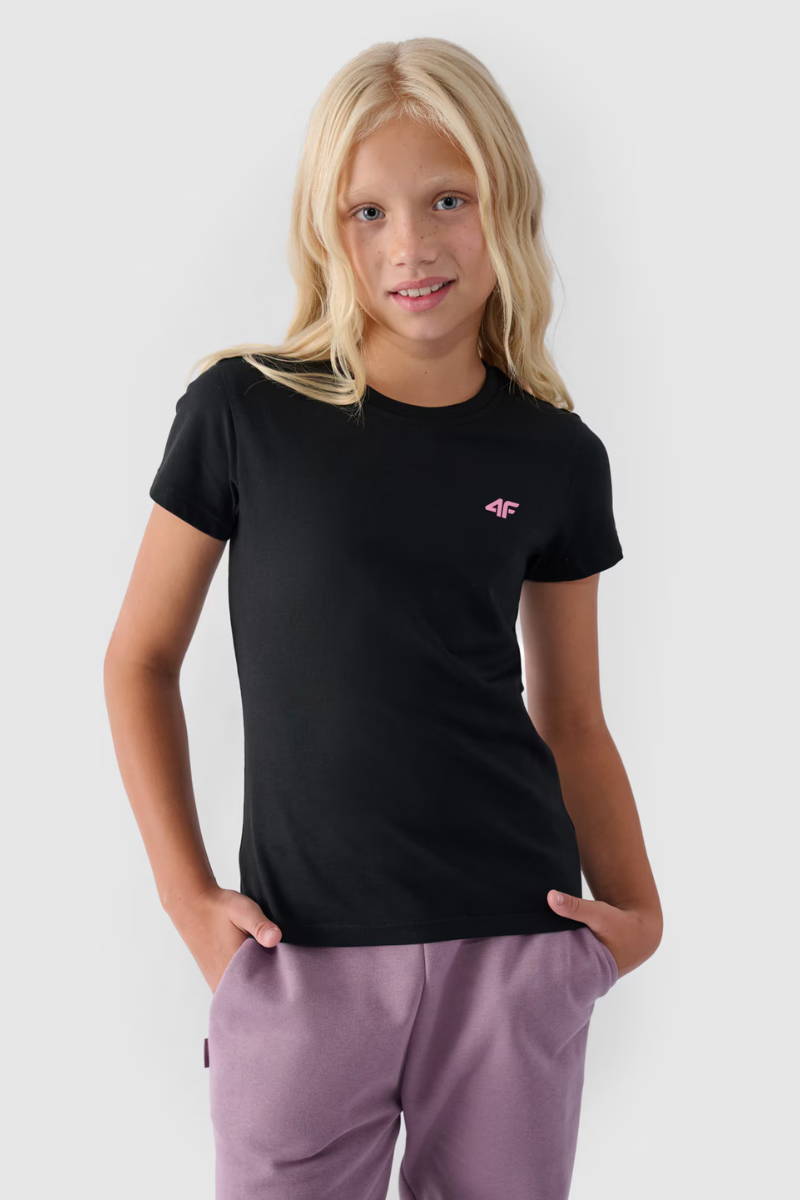 Гладка бавовняна футболка для дівчаток чорна 4F 4FJWMM00TTSHF1658-20S