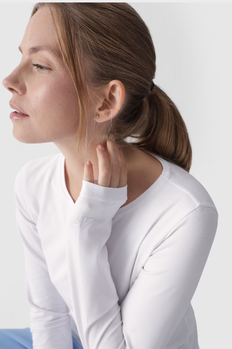 Гладка футболка з довгим рукавом 4F біла 4FWMM00TLONF376-10S