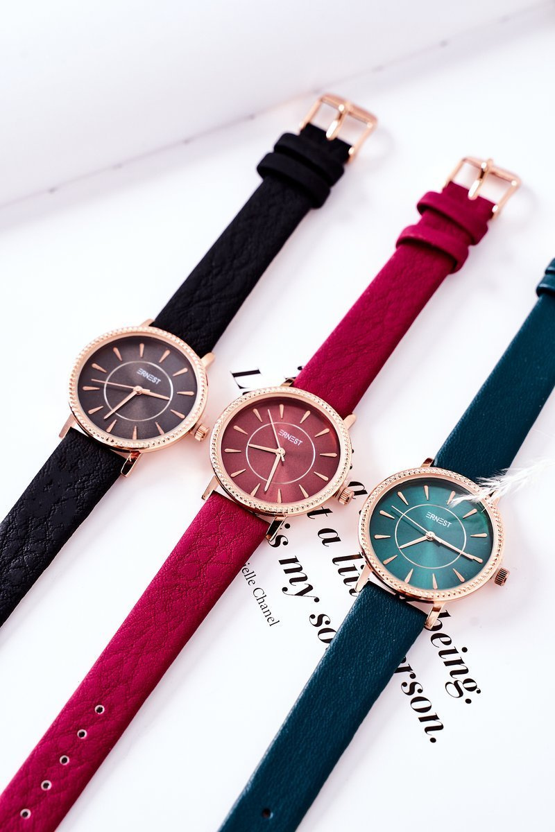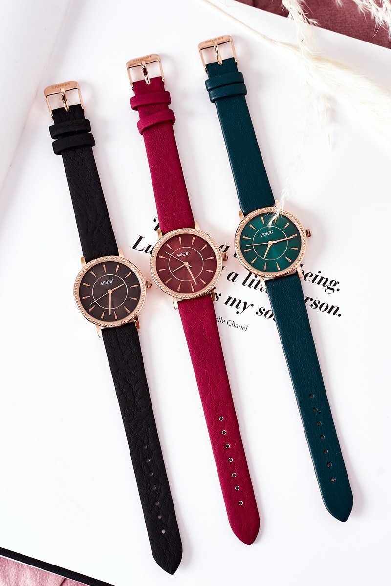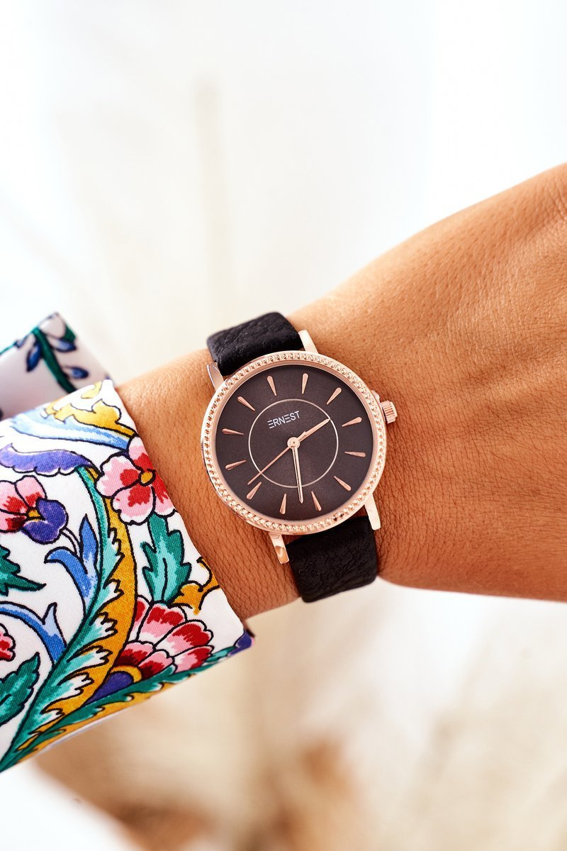 Гарний годинник ERNEST. Циферблат виготовлений з нержавіючої сталі, а ремінець з екологічної шкіри. Годинник не містить нікелю.