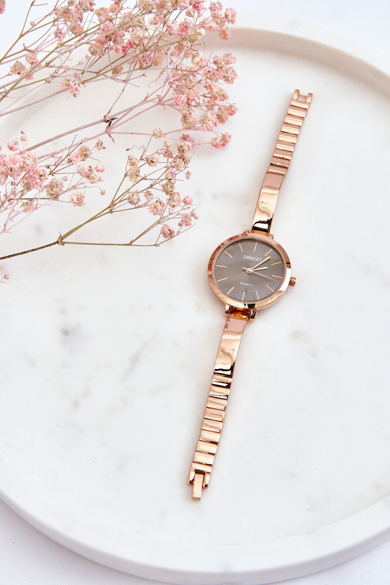 Годинник із чорним циферблатом на браслеті ERNEST Rose Gold