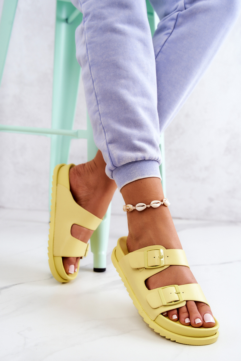 Гумові тапочки з пряжкою Corina жовтого кольору
