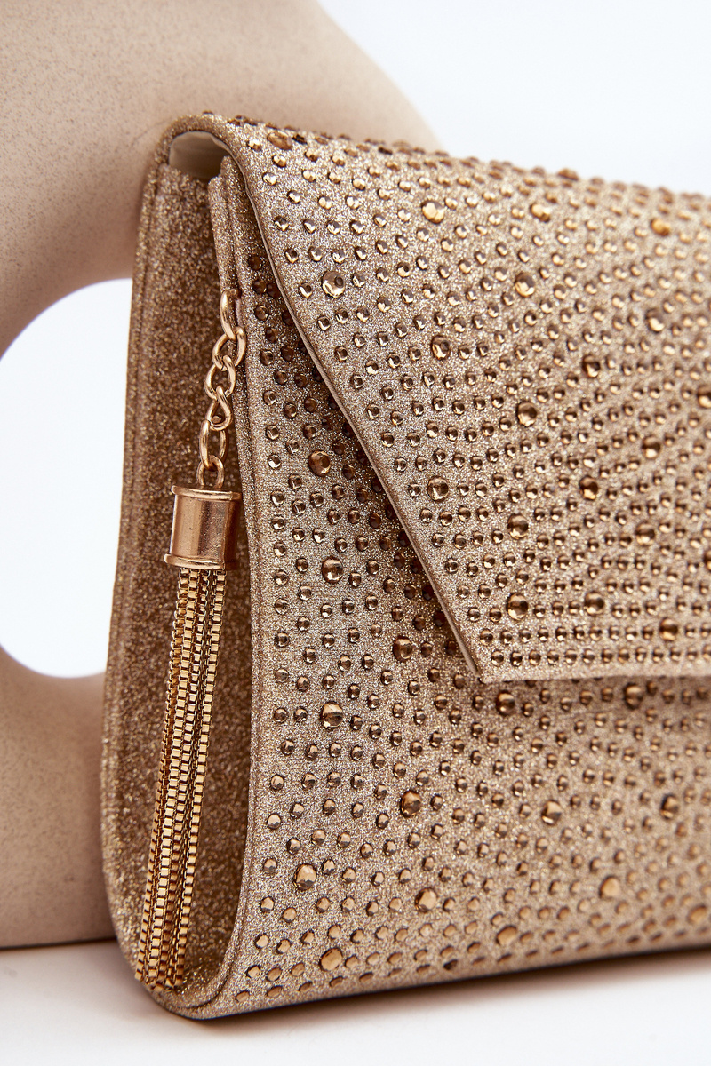 Сумка в стилі елегантний конверт, прикрашена блискучою парчою. Ви можете носити його з прикріпленим ланцюжком. Сумка має одне відділення і закривається на магніт, що робить її практичною у використанні. Така модель неодмінно приверне увагу та підкреслить елегантність будь-якого вбрання.