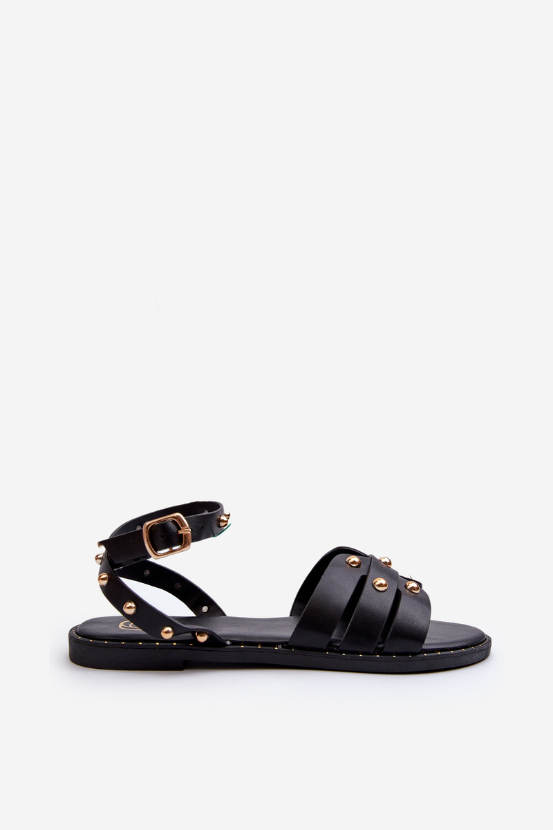 Декоровані жіночі босоніжки на плоскій підошві Чорні Ianaera