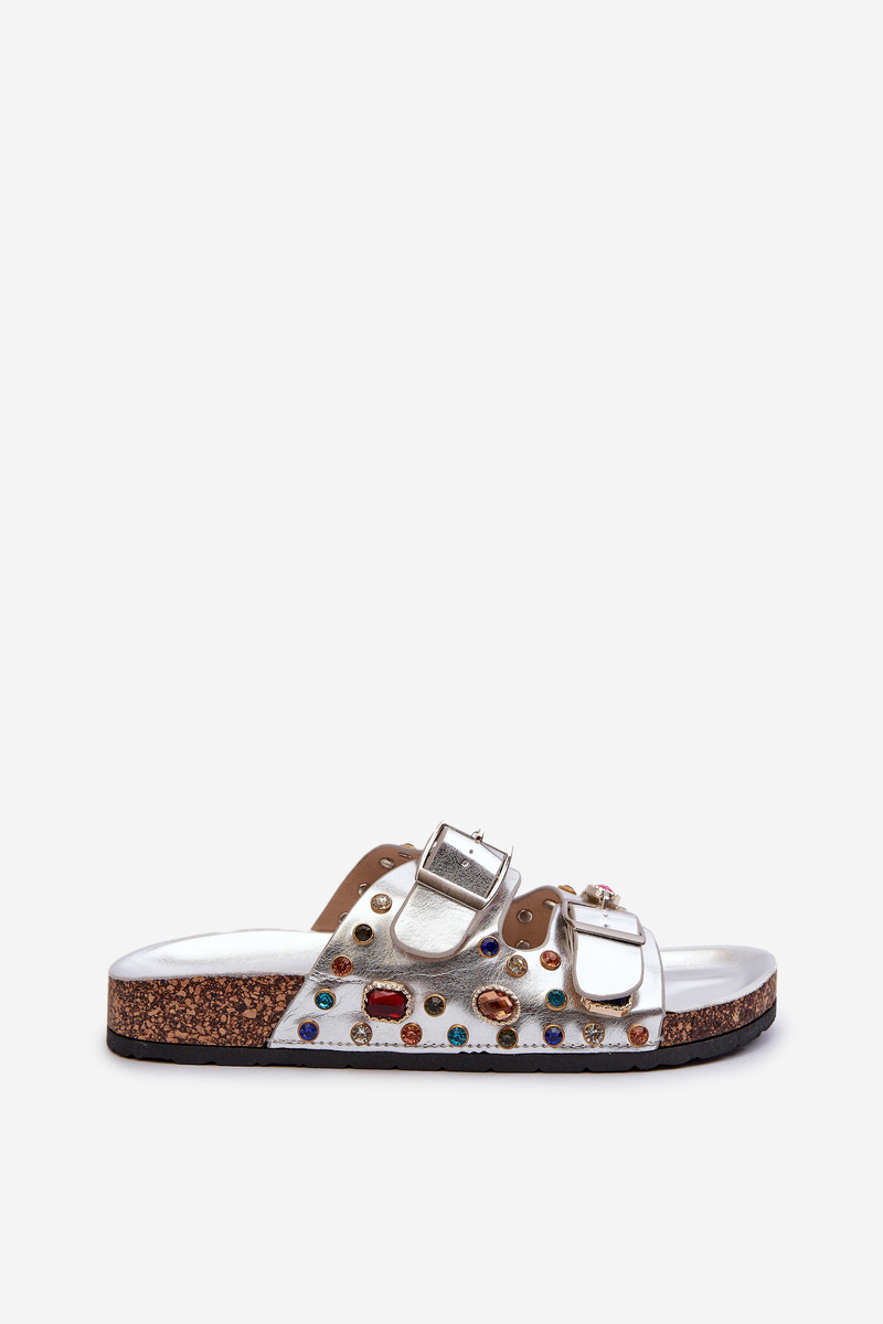 Декоровані жіночі тапочки з пряжками S.Barski MY121 срібло