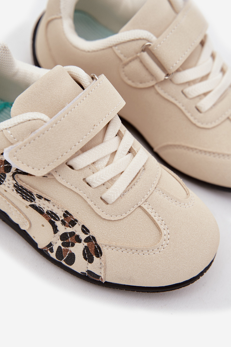 Дитяче спортивне взуття на липучці бежеве з принтом пантери Perrin