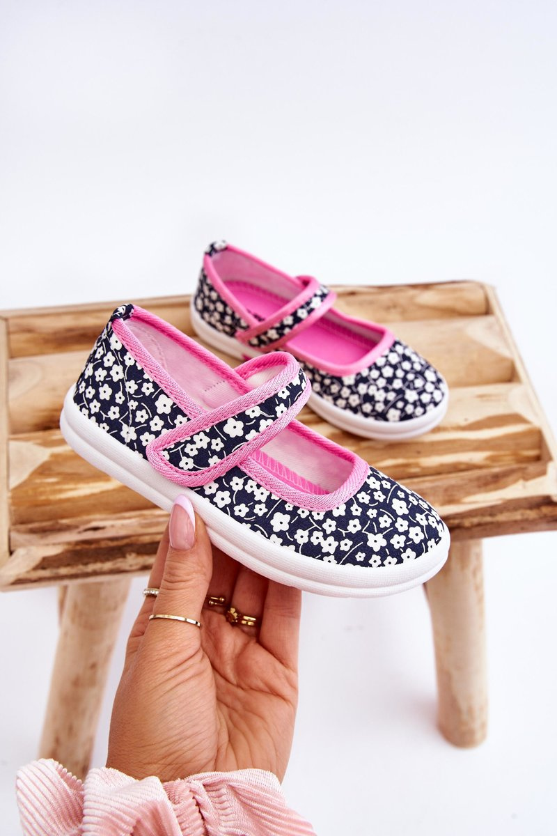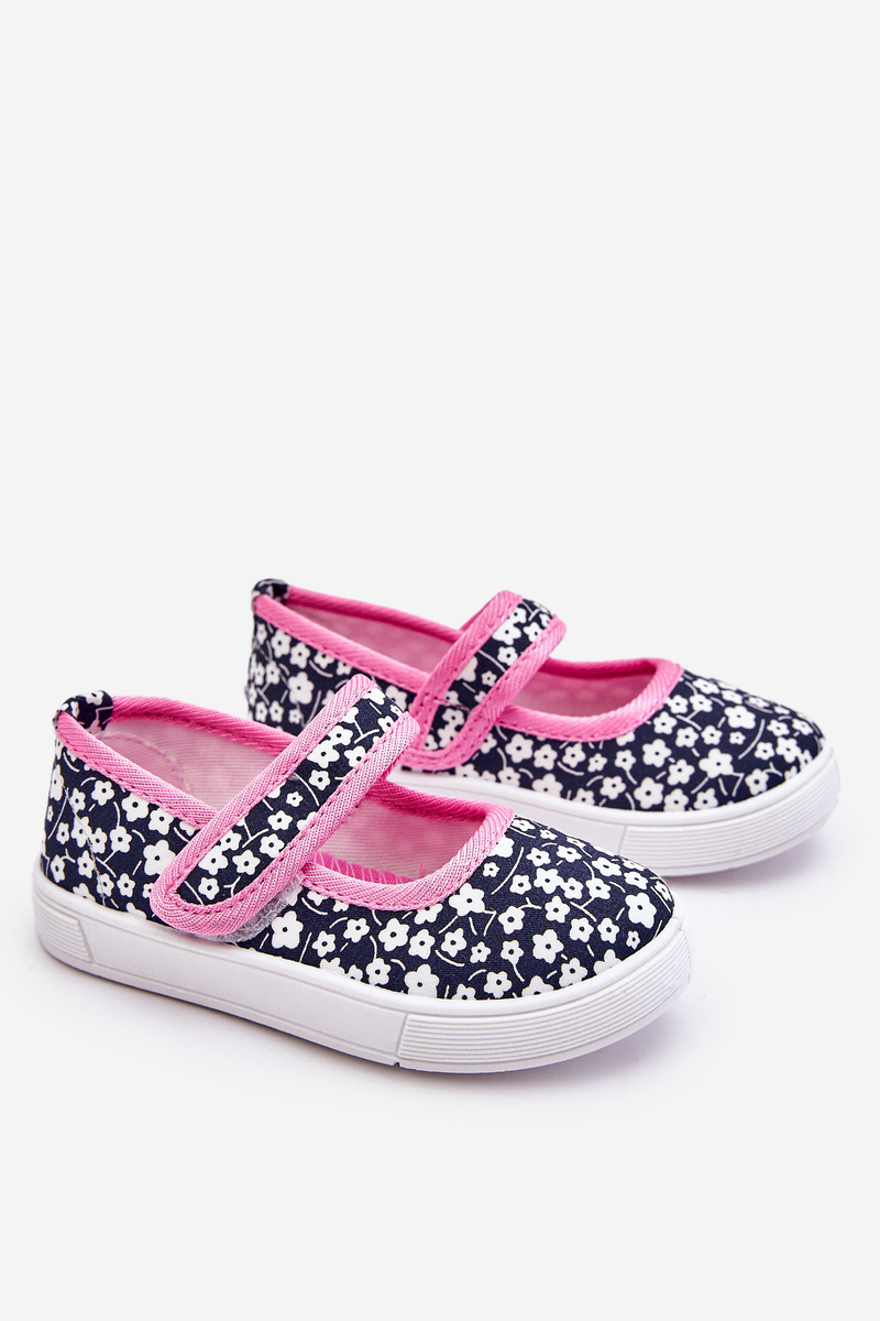 Дитячі балерини на липучці з принтом темно-синього та рожевого кольору