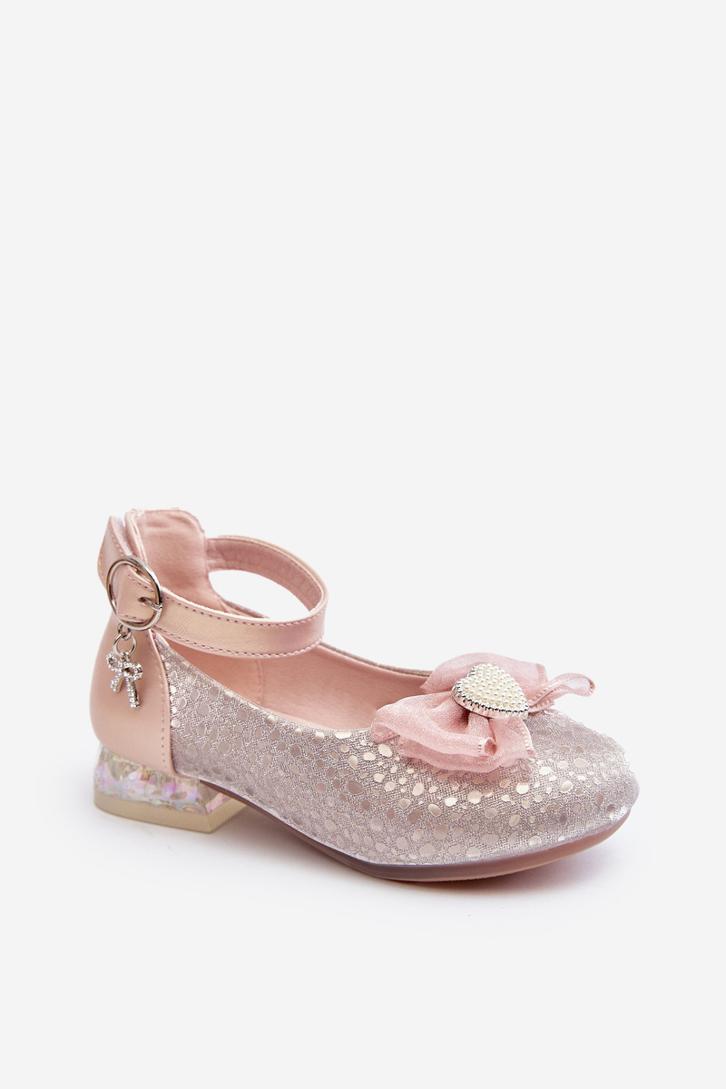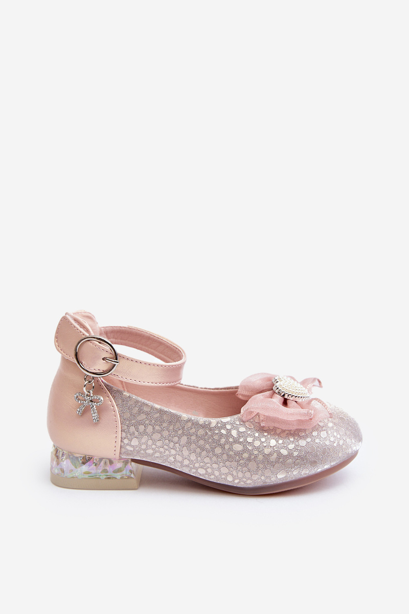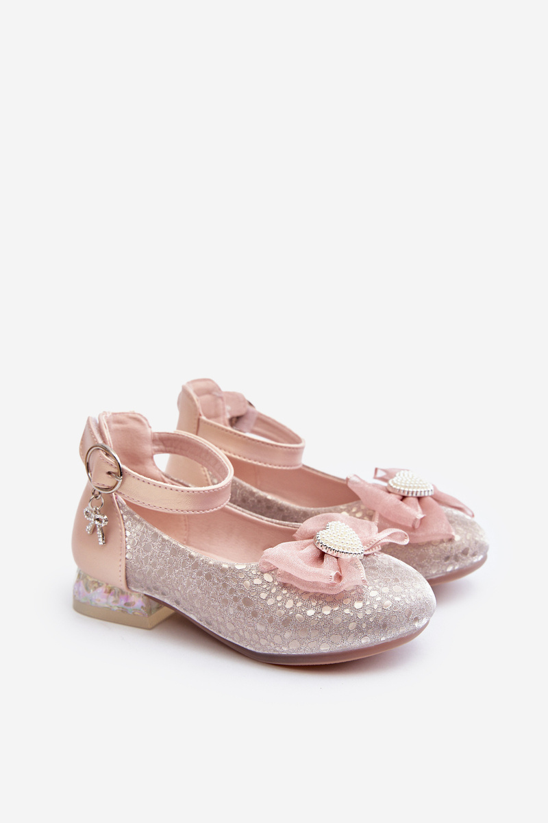 Елегантні дитячі балерини зовні виготовлені з пластику, а всередині - з еко шкіри. Взуття має класичну застібку на липучку. Крім того, прикрасою ремінця є декоративна пряжка. Красивий бантик на передній частині туфель робить ці балерини справді особливими. Підошва в цих балетках виконана з гумового матеріалу, а балетки сидять на плоскому каблуці. Каблук трохи затвердів. Обираючи розмір, орієнтуйтеся на таблицю розмірів.