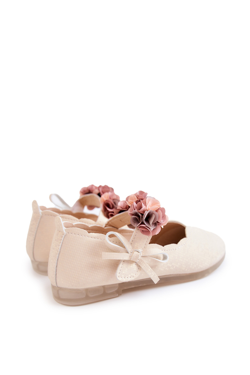Дитячі балетки з квітами на липучці світло-бежевий Caitlin