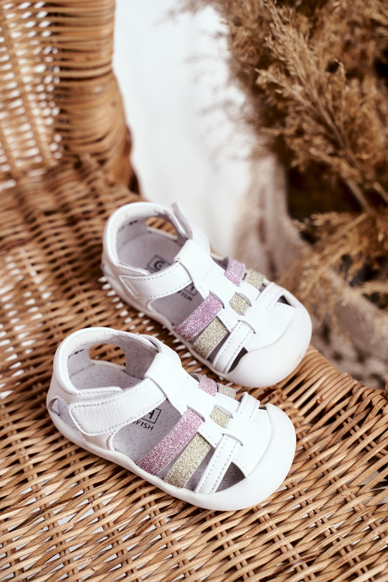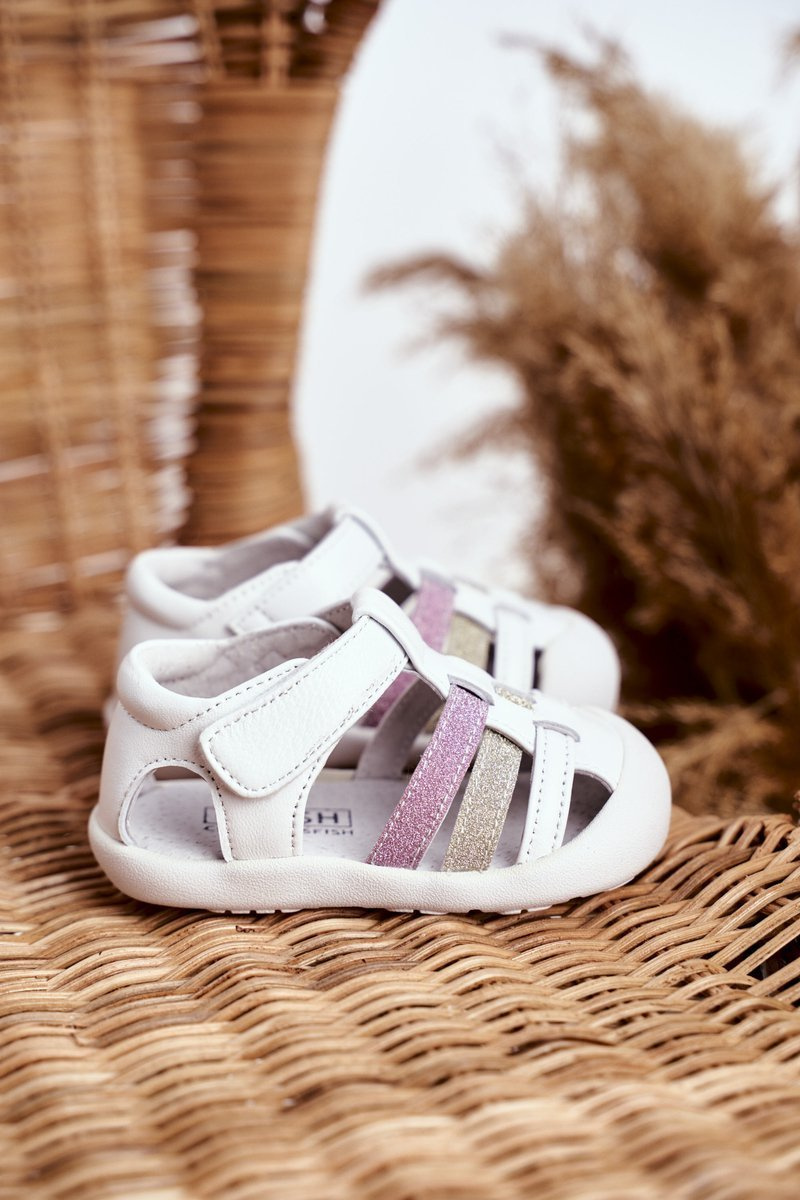 Сучасні босоніжки для дітей. Гарні кольори неодмінно сподобаються вашим дітям. Взуття повністю з натуральної шкіри. Невелика прикраса у вигляді смужки з блискітками. Під час вибору розміру пропонуйте таблицю розмірів.