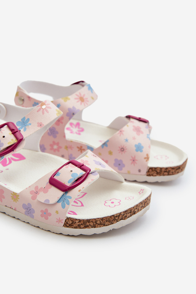 Дитячі босоніжки з квітами і пряжками рожеві Memoria
