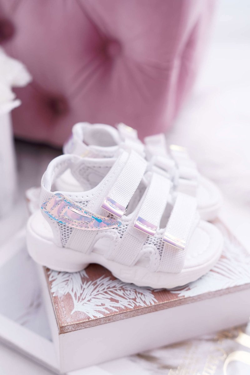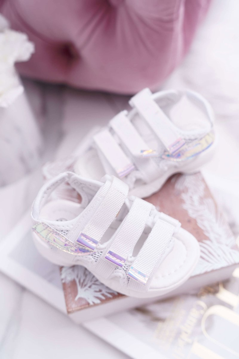 Дитячі босоніжки на липучках для дівчинки білі Kimmi