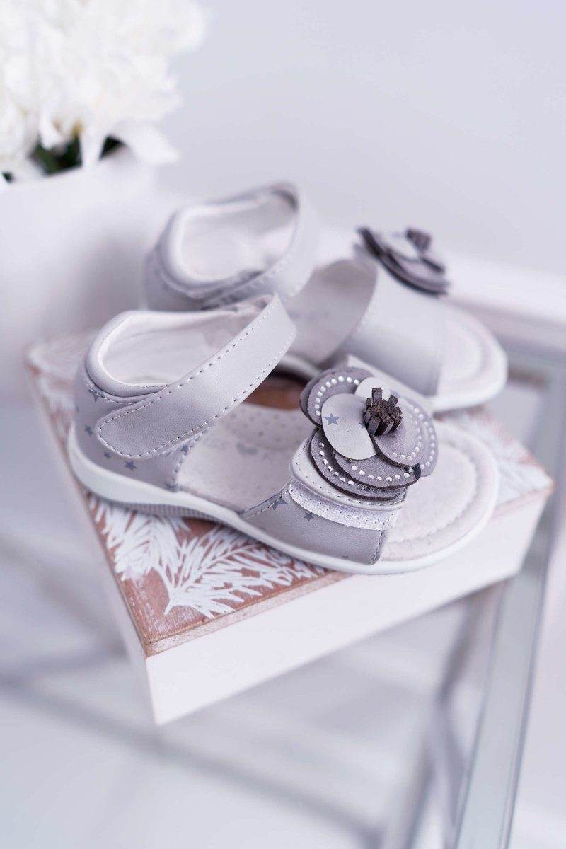 Дитячі босоніжки на липучці для дівчинки Фламенко сірі