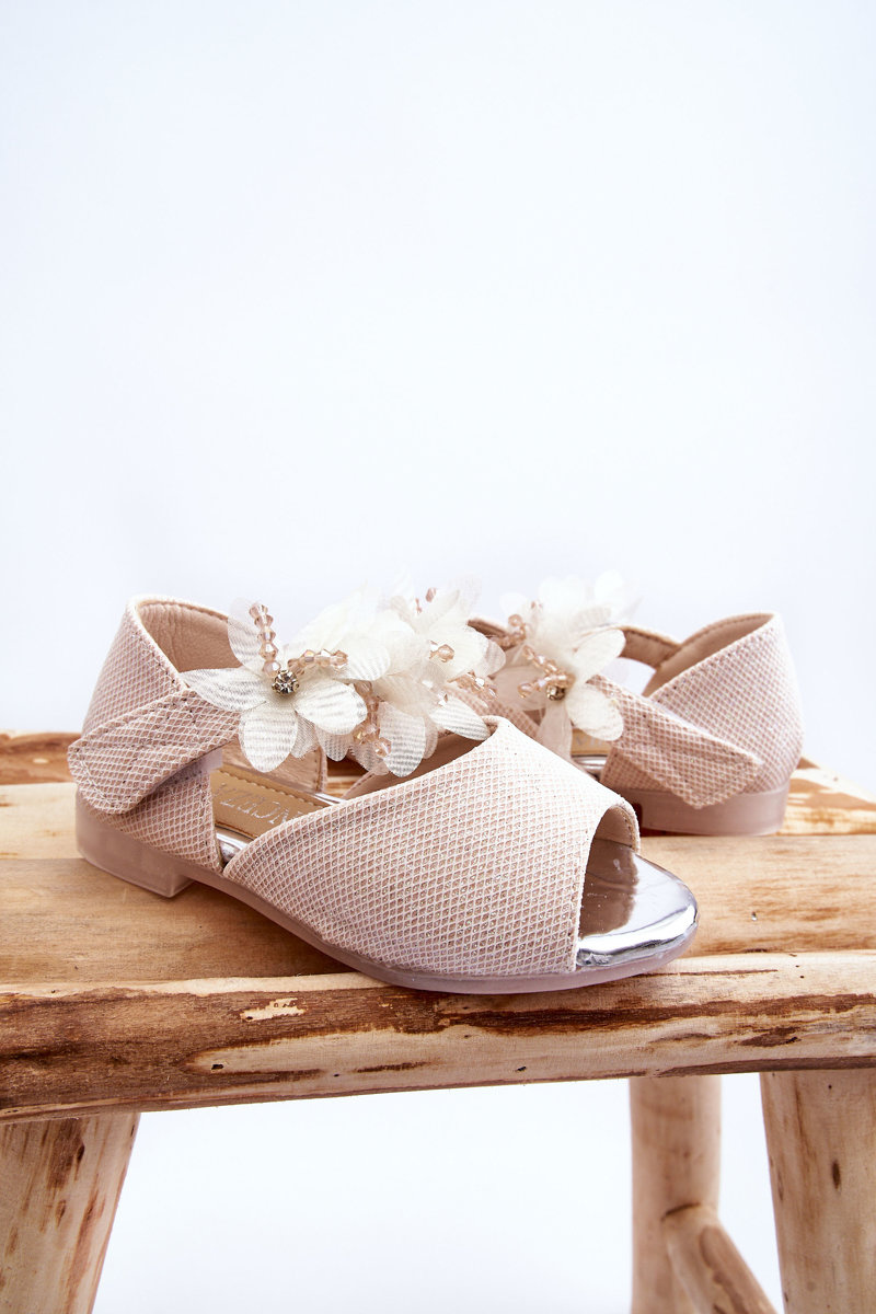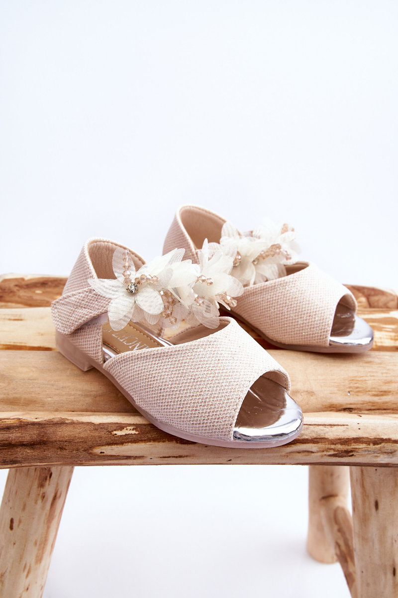 Дитячі босоніжки на липучці з квітами бежеві Fiona